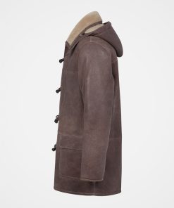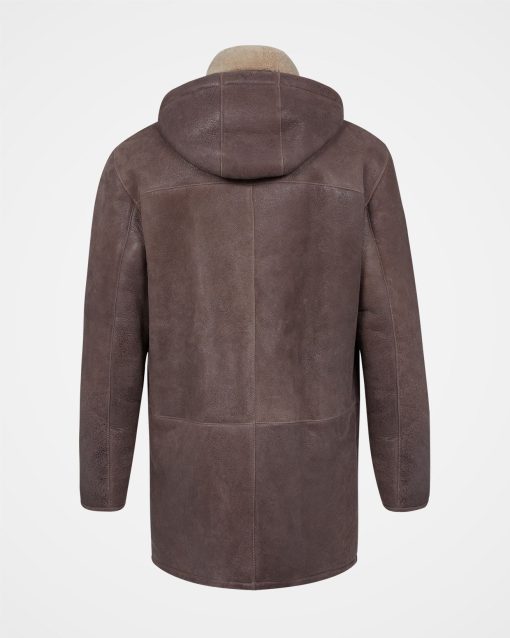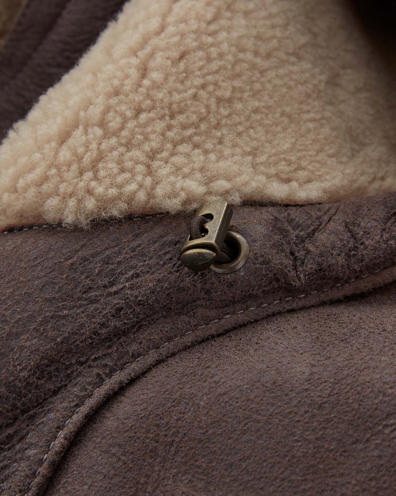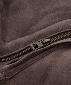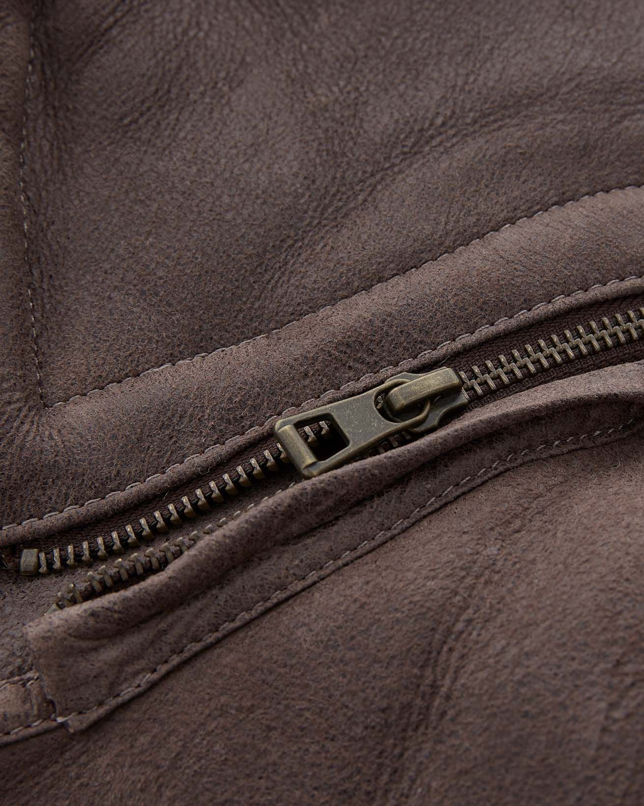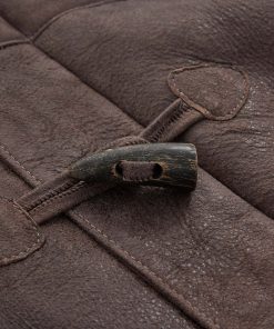 We’ve crafted it in rich leather with an antiqued finish and short, curly wool at the interior. Authentic horn toggles secure through the front with the benefit of an additional zip to keep the elements out.