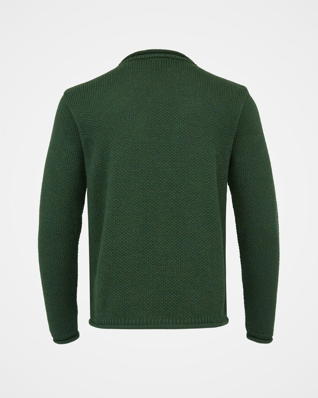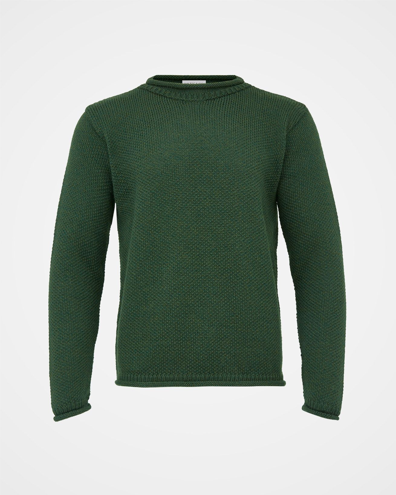 A classic knit made in Ireland to be worn on all occasions, from hikes in the hills to evening drinks. This crew neck jumper features a traditional rolled edge collar, cuffs and hem and is knitted in a textured moss stitch, a technique which makes the jumper subtly stand out from the rest.