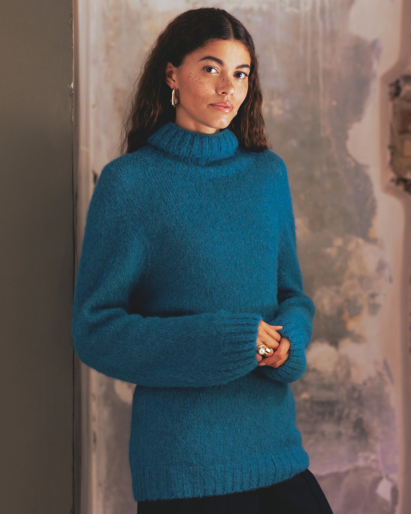 A easy-fit jumper featuring a rolled neckline and ribbed collar, cuffs, and hem. In a soft and lofty yarn this is the perfect jumper for adding warmth and character to your wardrobe this season.