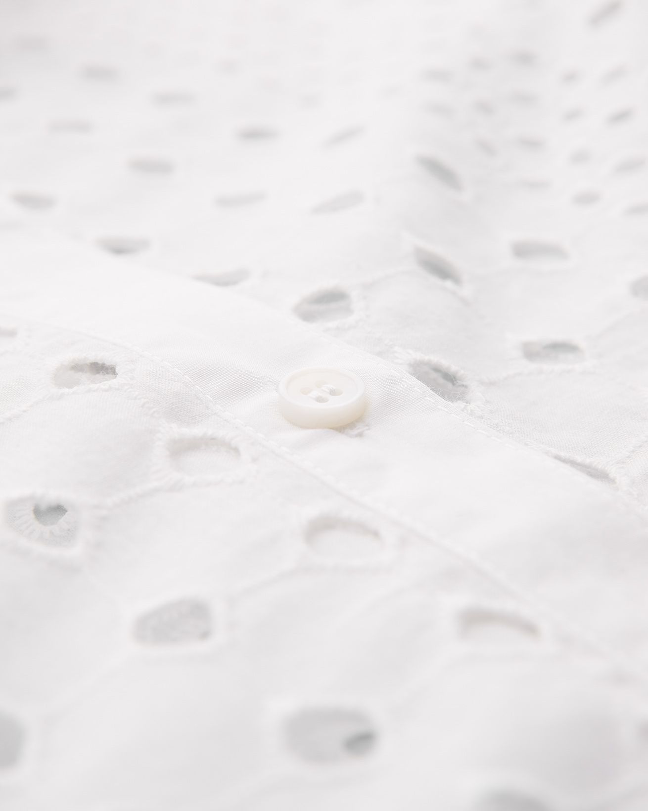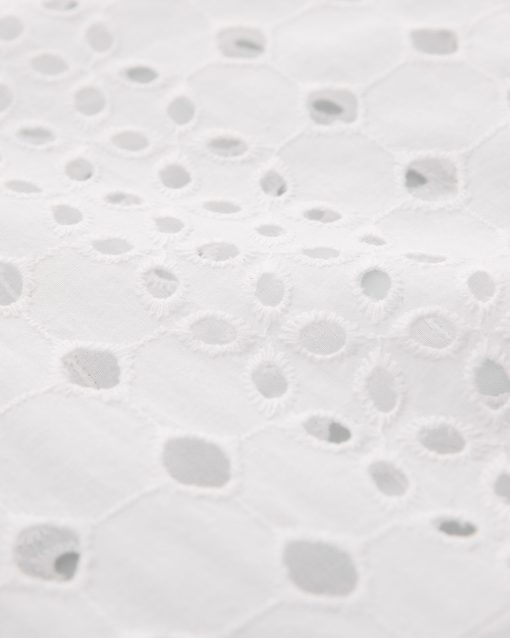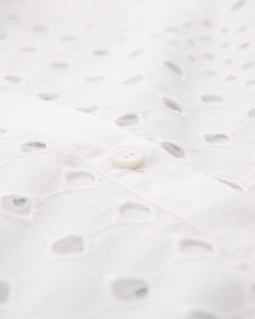Perfectly on trend, our beautiful Broderie Sleeveless Maxi Dress has a flowing, tiered silhouette and a gathered waist. The broderie cutwork fabric of the outer layer creates a sheer appearance, and the dress is lined with a shorter cotton cami dress. The collar and placket are made in plain contrast cotton.