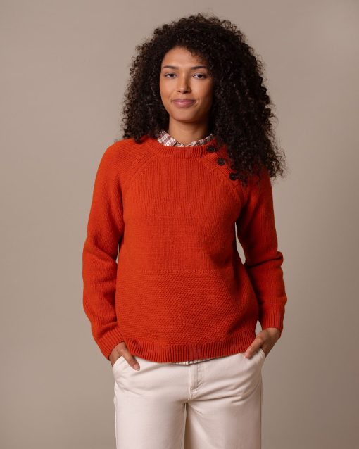 With a classic crew neckline and raglan sleeves, this jumper is both timeless and comfortable. Its corozo buttons add a touch of character to an effortless style.