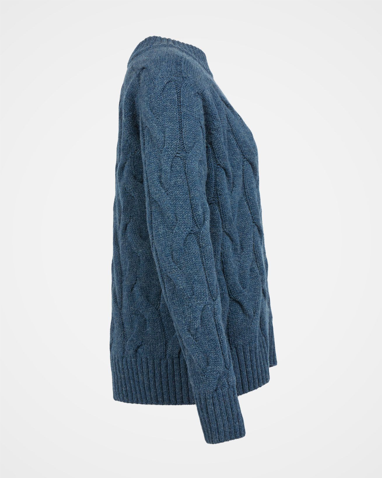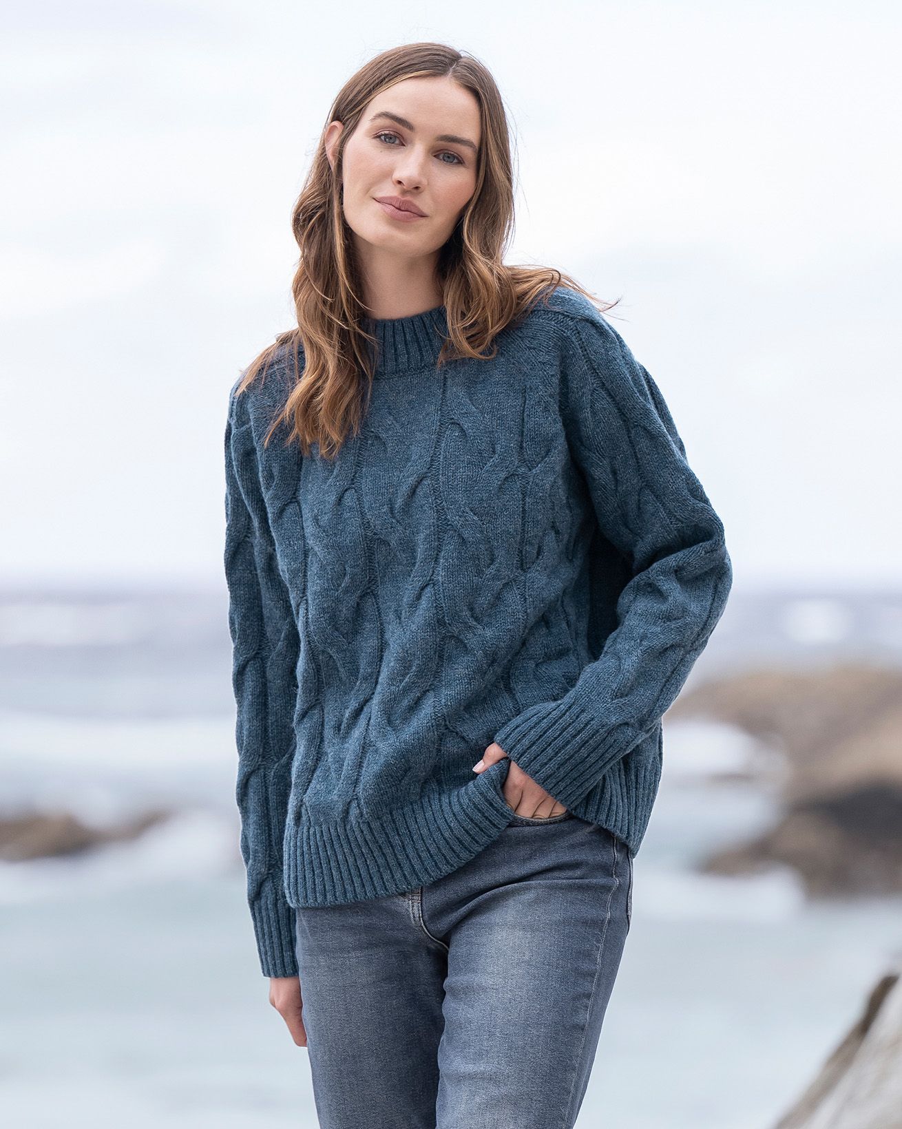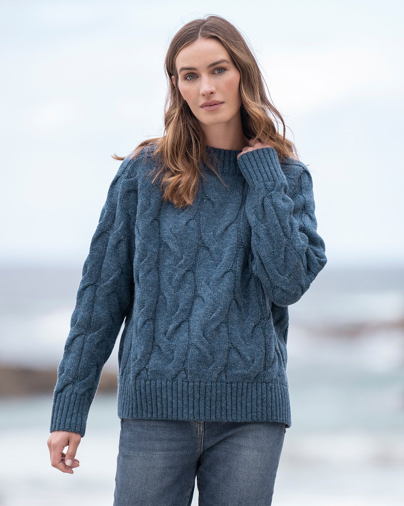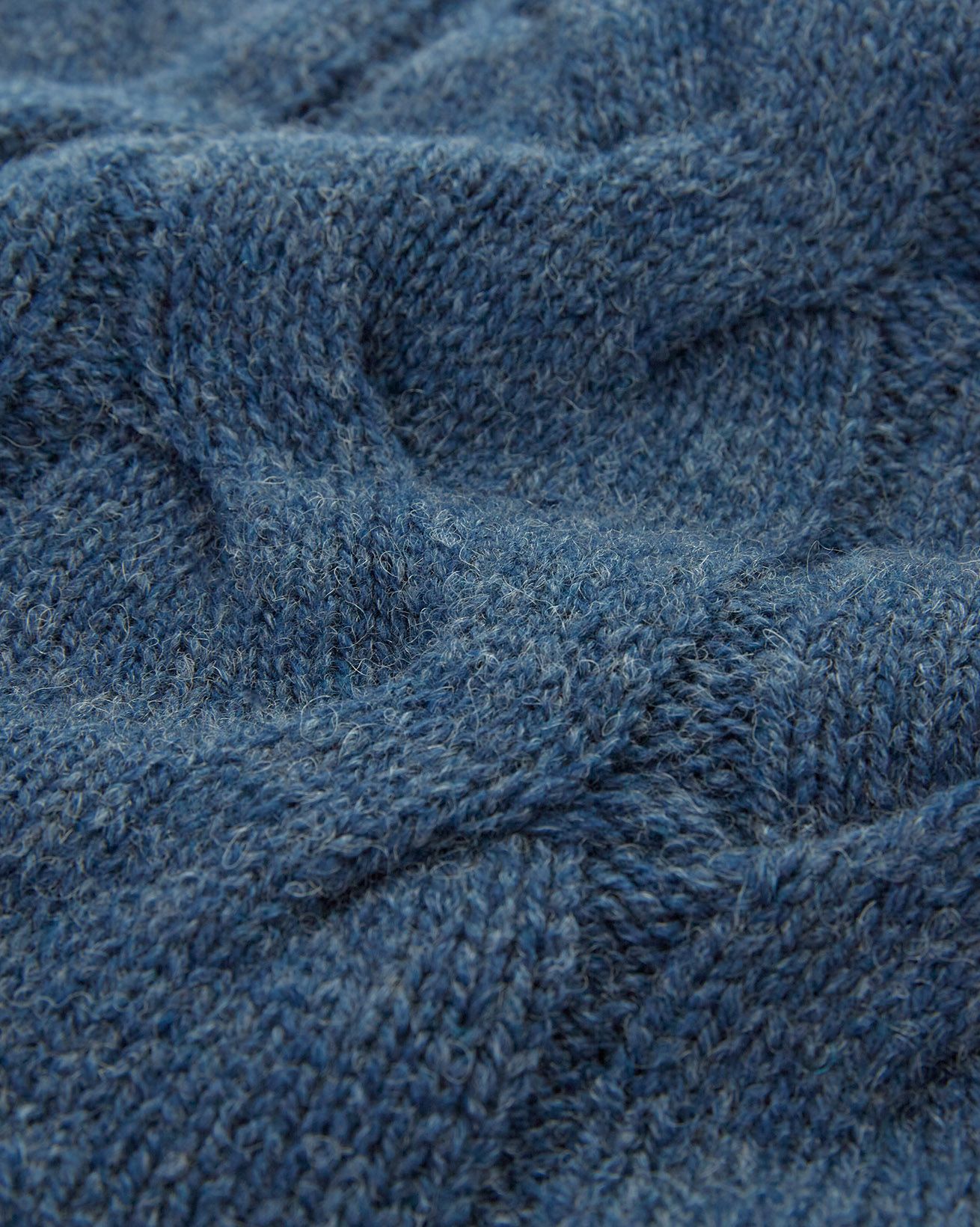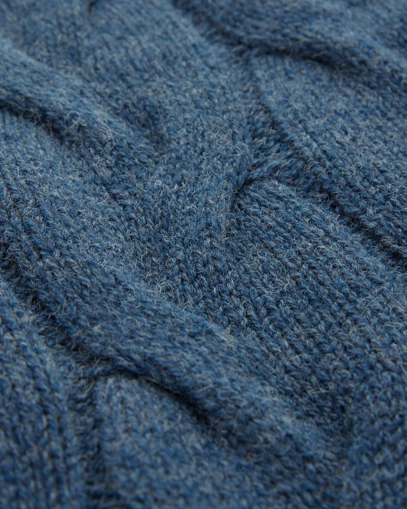 Our Cable Mock Neck Jumper is a welcome addition year-round staple knits. The mock neck jumper features an oversized cable design complimented with ribbing to the cuff, hem, and neck trim. Made with Shetland-style yarn, it offers a heritage feel with a marl effect that adds depth of colour.