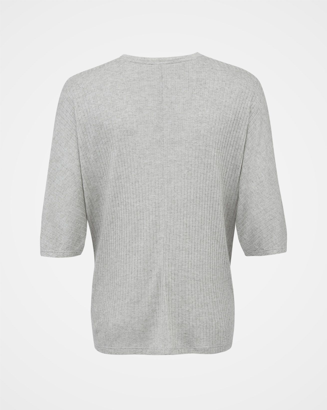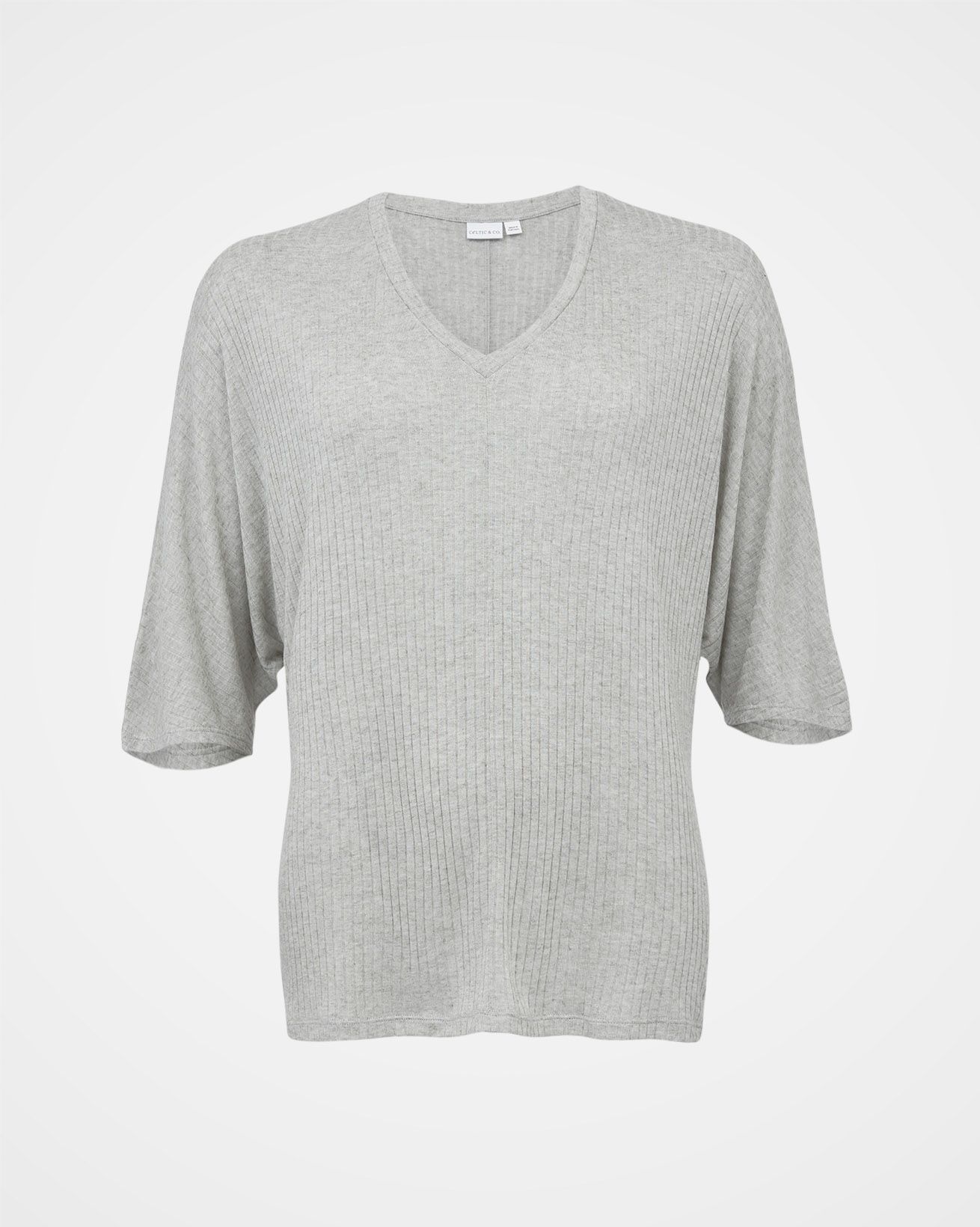 Part of our lounge collection, this slouchy V-neck T-shirt is understatedly luxurious. Made from super luxe jersey combined with cashmere, it has a wonderfully soft drape. Knitted in a wide rib, it’s light and almost gauzy, making it incredibly breathable and comfortable. Features include centre front and back seam detail and a grown-on, elbow length sleeve.