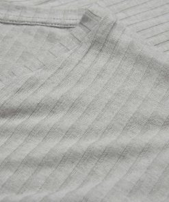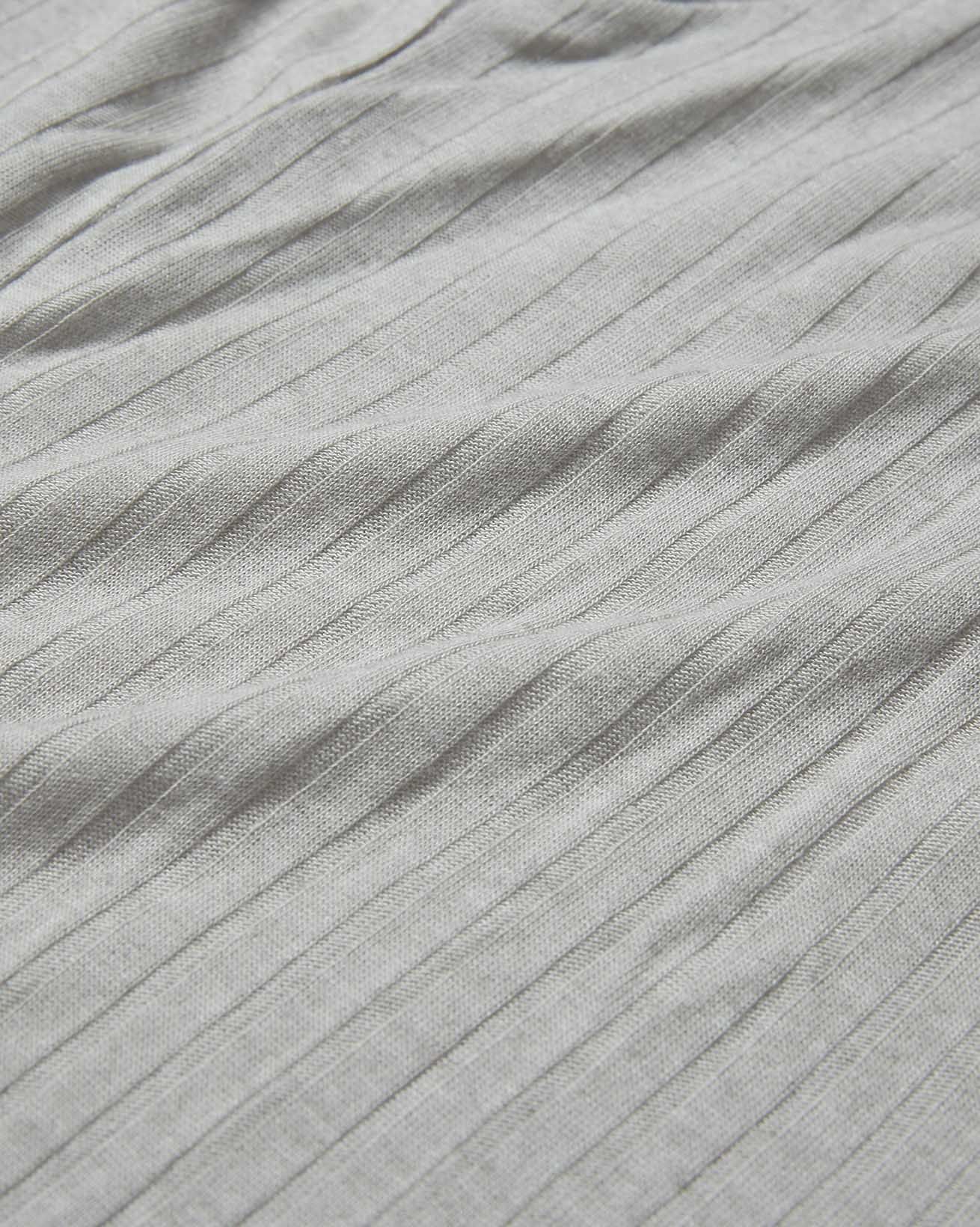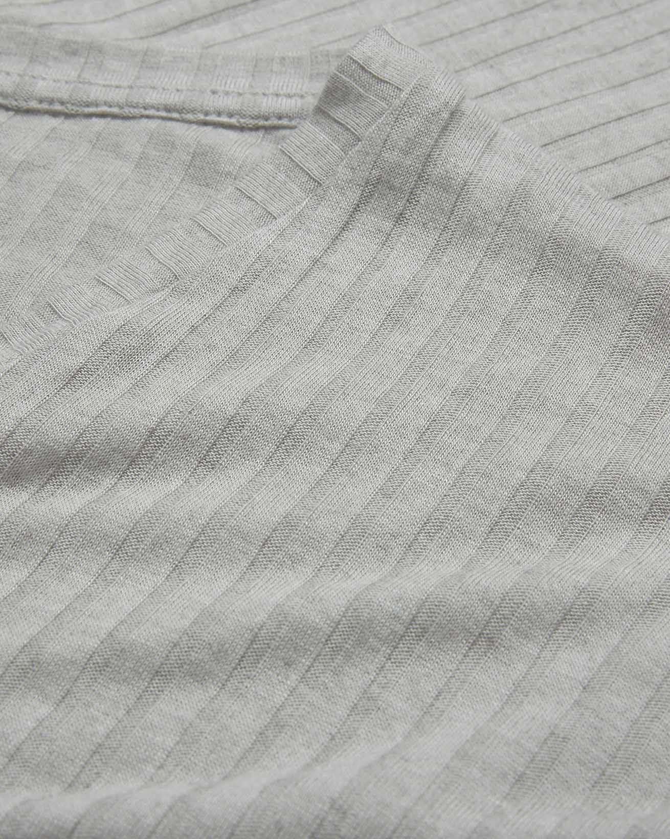 The cashmere modal blend results in a wide rib, light, gauzy marl. Our super soft cashmere is from China, whilst modal, made in Austria, is a bio-based yarn created from spinning beech tree cellulose. The fibre is spun, knitted into fabric and made into garments in Portugal.
