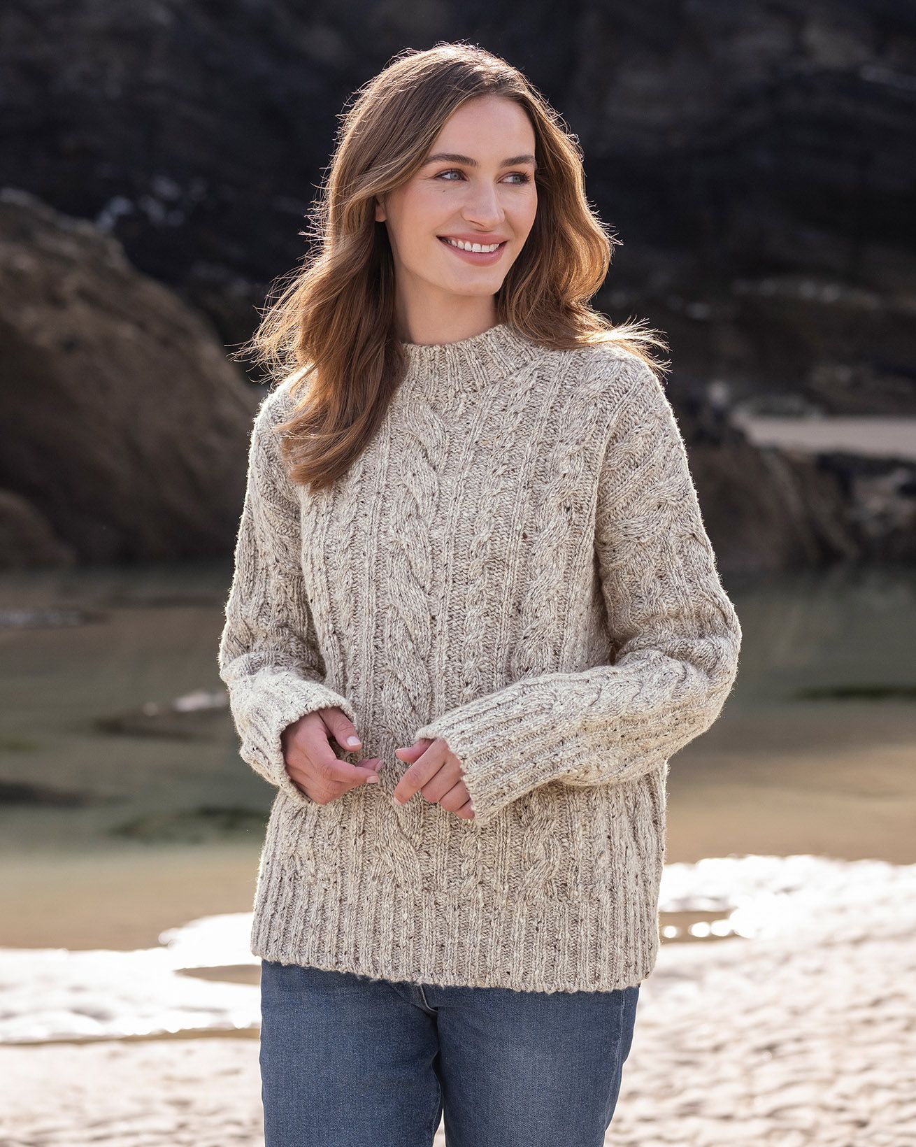 Crafted from one of our most popular yarns, this real Donegal wool jumper is loose fitting for an easy-to-wear nature. We’ve opted for twisted rope-style cabling running down the garment and added a chunky deep rib crew collar and matching cuffs and hem. Wonderfully warm and designed to last, we’re sure you’ll love this modern twist on a classic cabled jumper.