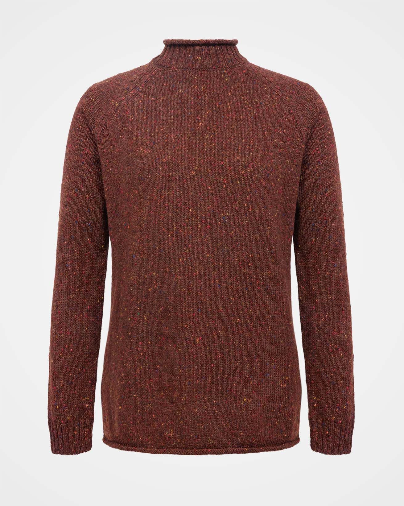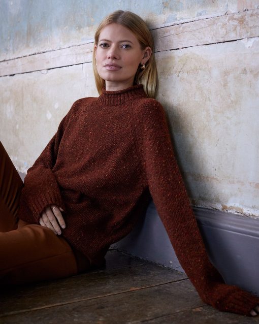 This warm jumper is created in a classic, easy shape that lets the beautiful flecks and neps of the yarn speak for themselves. Crafted from real Donegal wool, we’ve opted for a fisherman’s jumper-inspired ribbed and cast off rolled edge mock neck collar and raglan sleeves. The ribbed cuffs and cast off rolled hem allow the jumper to hang completely straight, making it easy to wear and style.