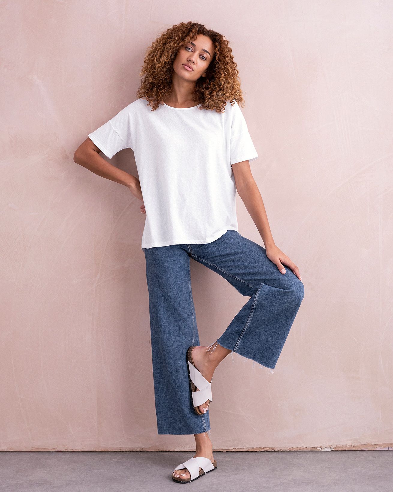 Elevate your casual style with our Drop Shoulder Drape T-Shirt. This relaxed fit jersey T-shirt features a drop shoulder and boxy fit body with a curved hem which is slightly longer at the back, for a contemporary laid-back feel. Made from soft lightweight slub organic cotton jersey, it’s a perfect choice for those who value easy styling.