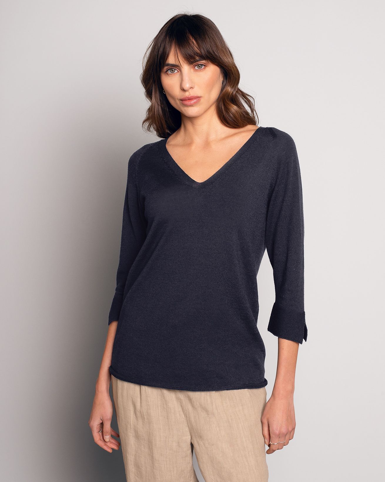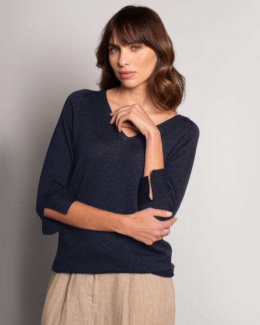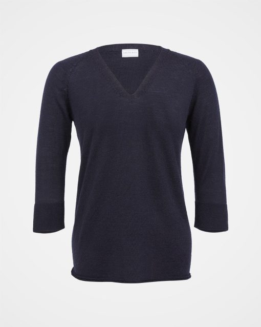 Celtic & Co Women’s Fine Knit Merino V Neck Jumper | Dark Navy