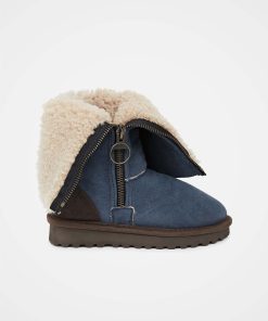 Crafted in premium British sheepskin, these boots offer two-in-one styling: the zip with its chunky puller can be left closed or pulled down to reveal the contrast interior.