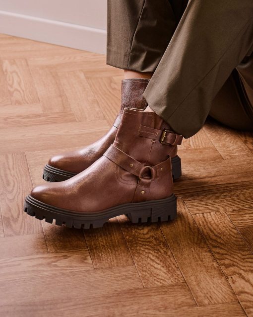 Our Biker Ankle Boots feature a quality leather upper with strap and ring biker detailing. They come with a zip opening for easy wear and are lined with leather, sitting atop a chunky sole for unrivalled durability.