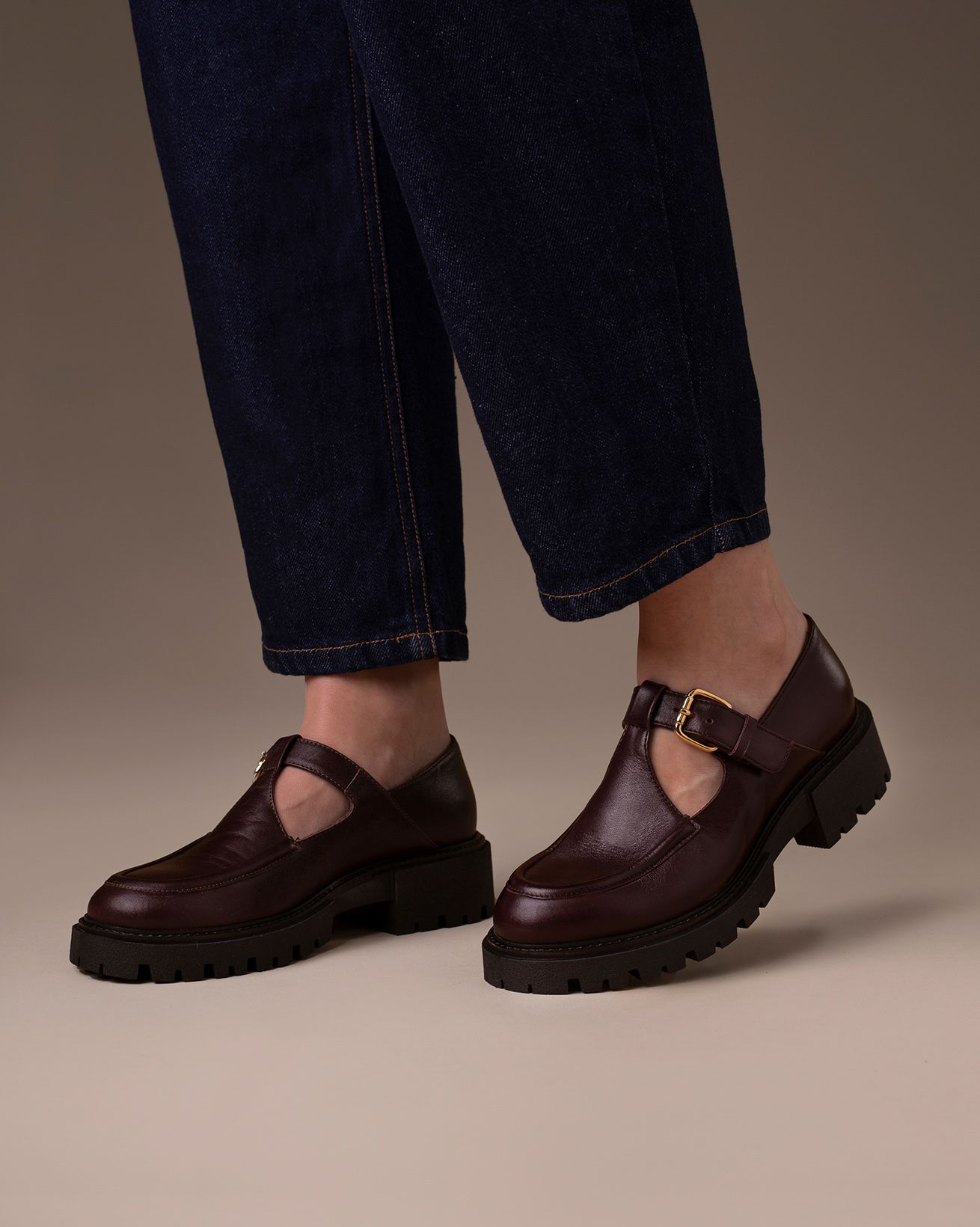 Crafted from Leather for both the upper and lining, these chunky T-bar loafers feature a buckled strap, seaming detail around the toe, and a robust outsole with a leather welt.
