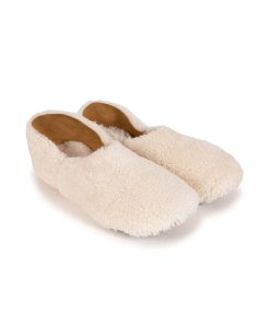 Crafted in elegant ivory sheepskin with a traditional slipper silhouette, these slip-on shoes are built on a soft leather sole for guaranteed longevity.