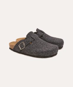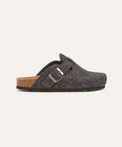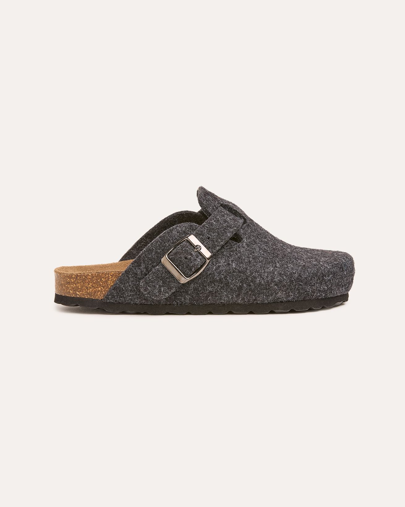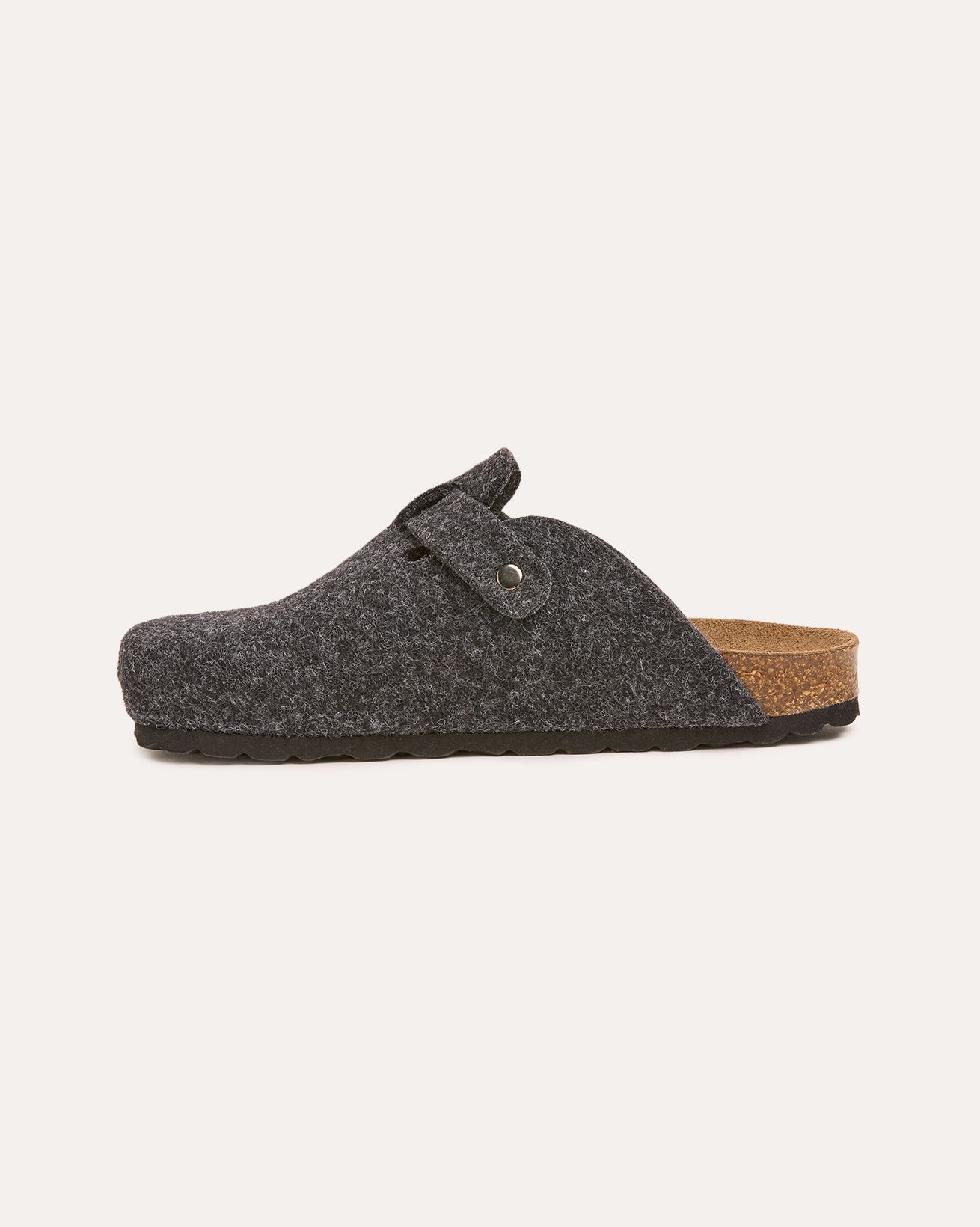 These slip-on clogs feature an upper made from wool and polyester, with a suede lining. They include a moulded suede-lined insole, a cork midsole, and an EVA outsole.
