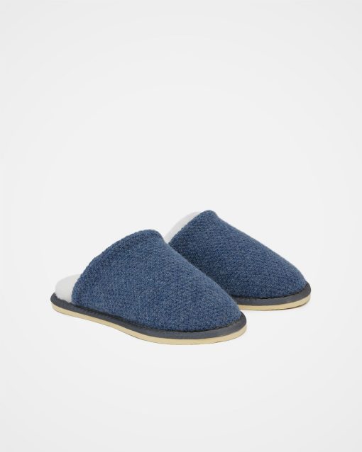 Each pair of slippers is crafted with a textured woollen outer and lined with dreamy sheepskin, encasing your feet in cloud-soft comfort that you’ll never want to remove.