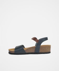 - Low wedge moulded cork sole with recycled material outsole