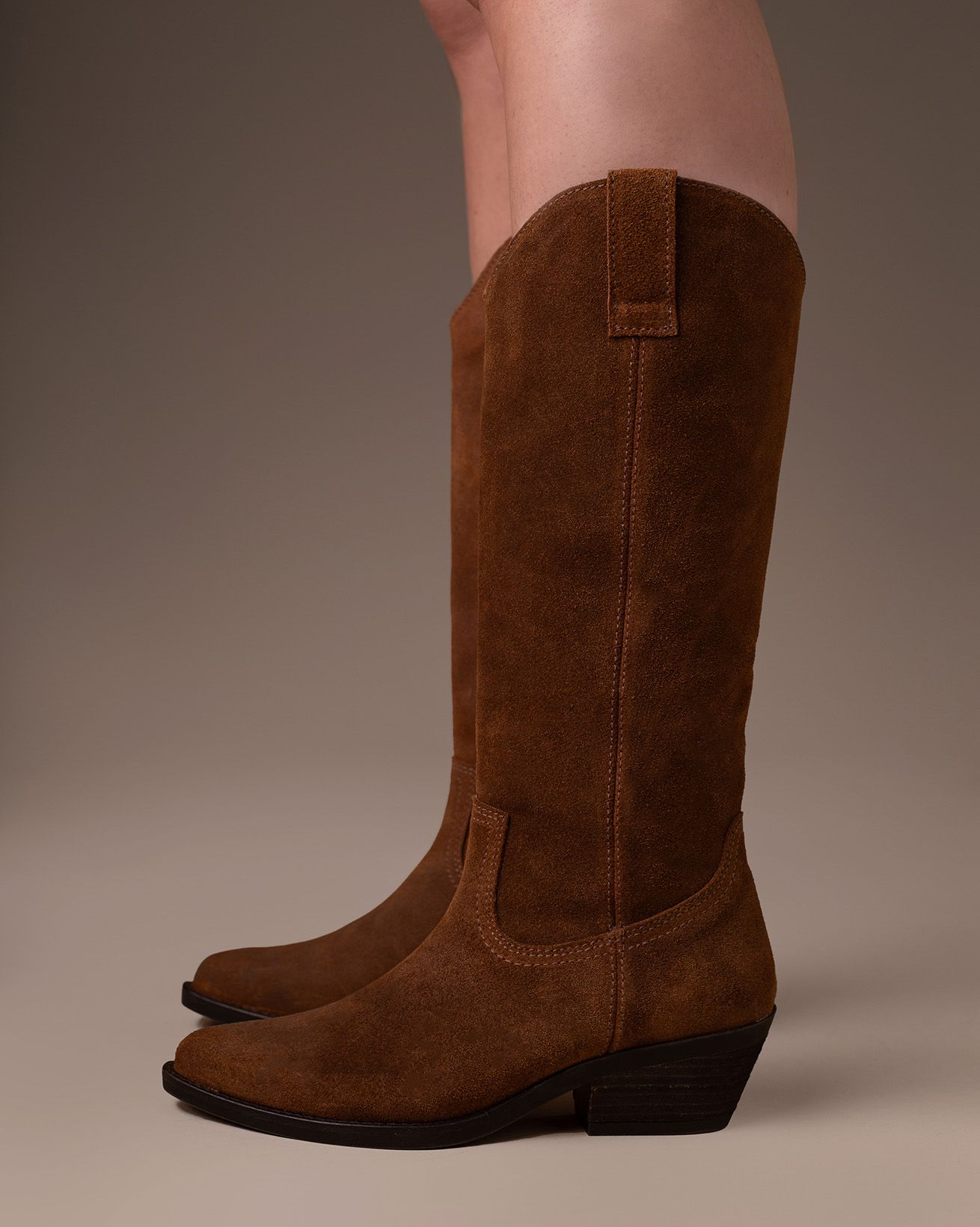 • Knee high pull on cowboy styled boot
