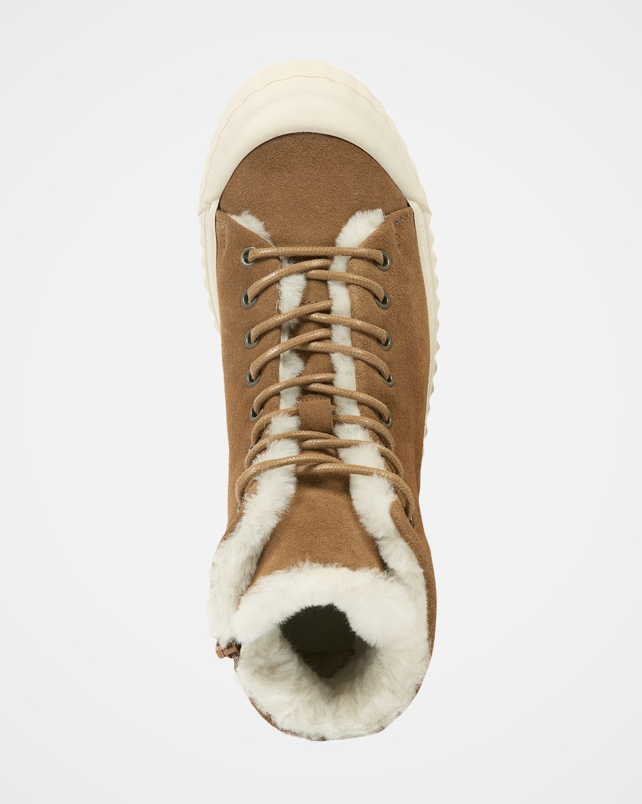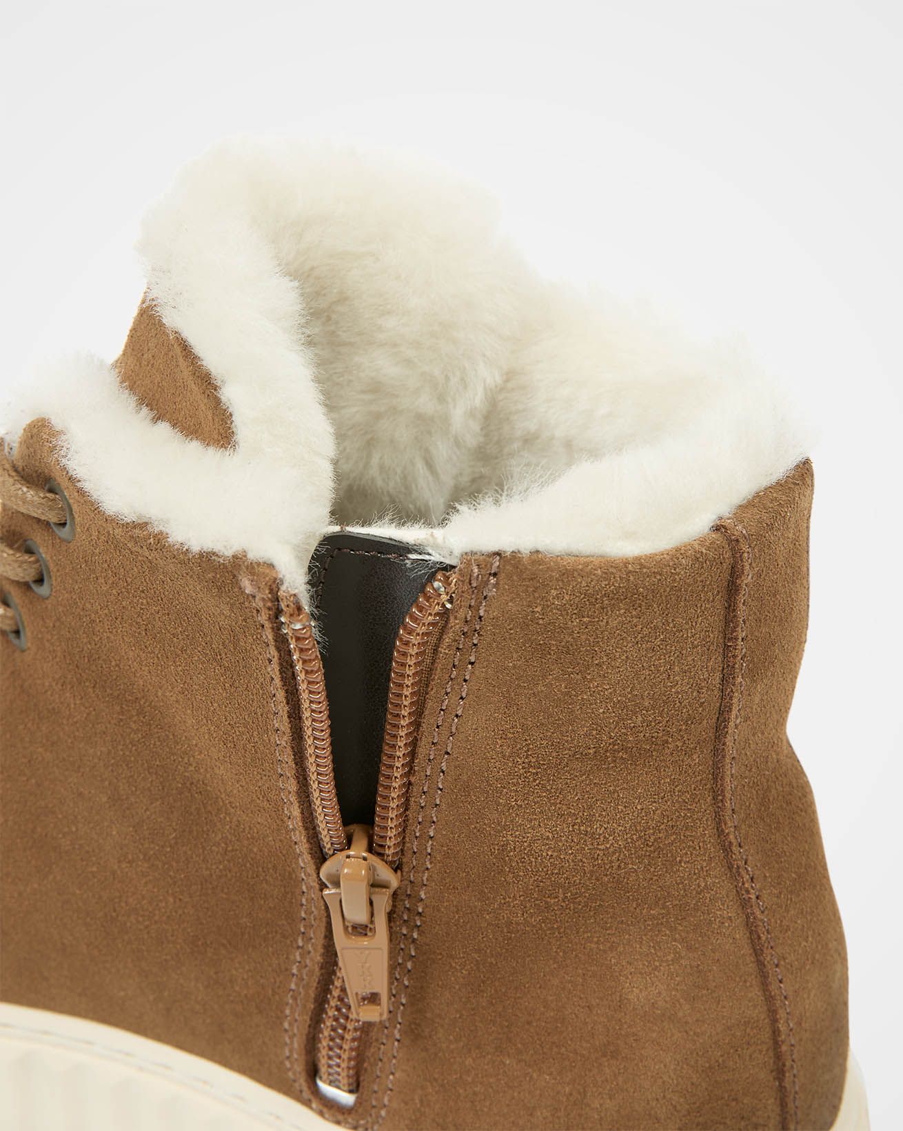 Our Sheepskin high top trainers feature a suede upper, sheepskin lining, and sheepskin insole for warmth and comfort. These trainers feature lace-up styling and a ribbed sole unit with closed toe detail, providing both comfort and durability.