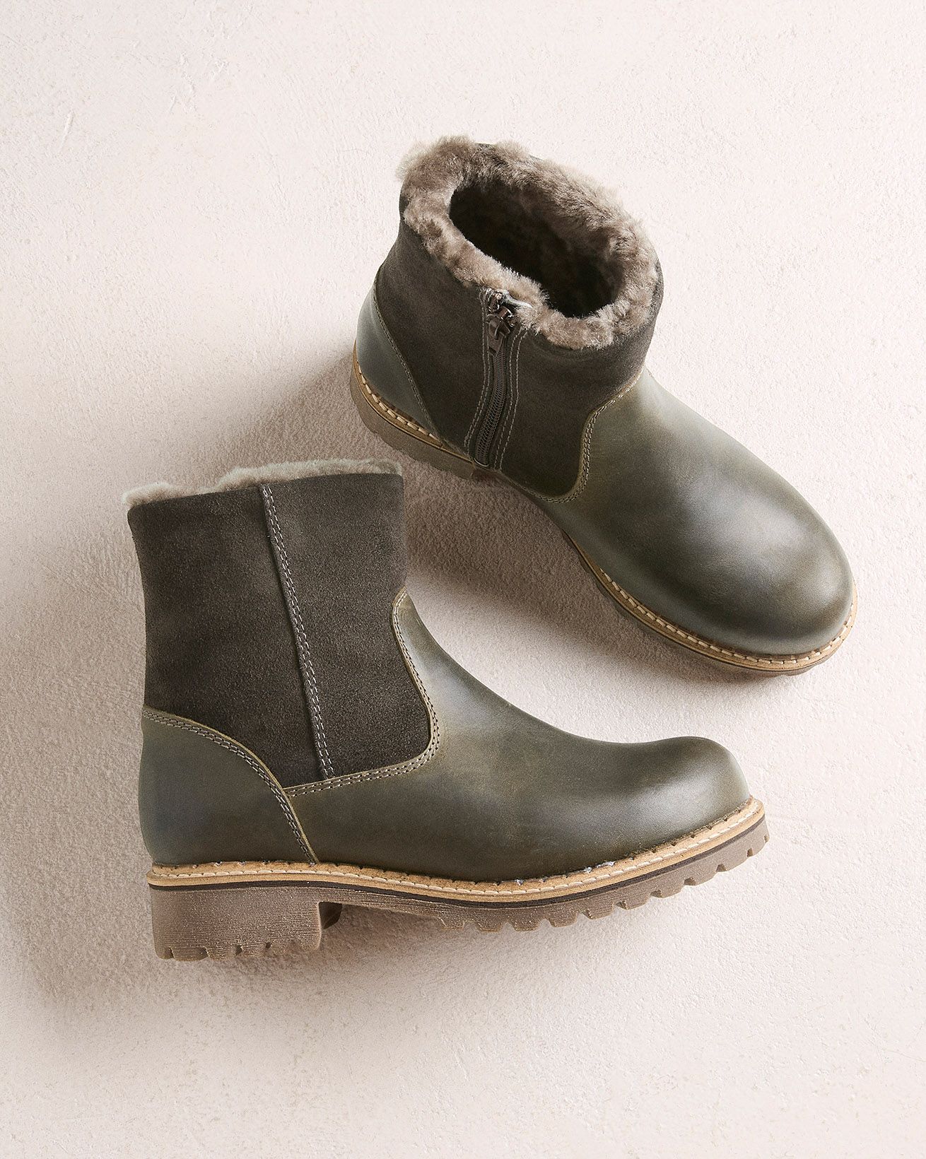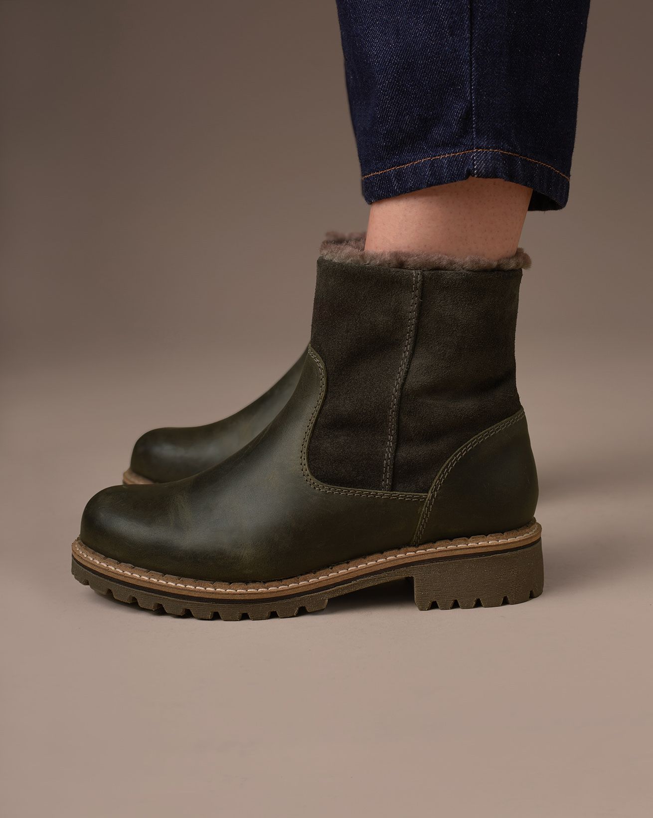 Designed for comfort and protection, these ankle boots feature an upper of Cow Leather and Suede, and are luxuriously lined with Sheepskin and Leather. They include a full-length zip on the inner side, a real sheepskin lining with a leather insole, a waterproof membrane throughout, and vulcanised lining seams for water repellency.