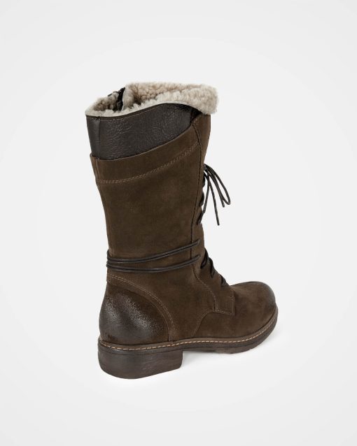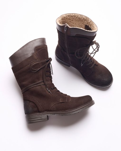 Inspired by country living and the need for hardy footwear that looks the part, our Woodsman boots are created in distressed leather with a cosy sheepskin trim.