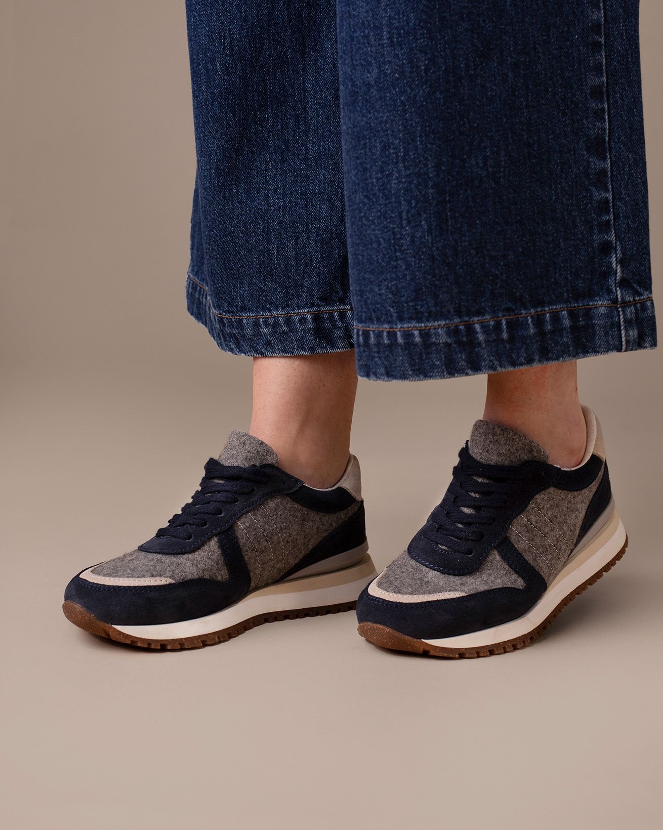 These runner style trainers feature an upper of Cow Suede and Merino Wool. They are lined with a nylon terry material &boast a cork insole. Two sets of laces are supplied.