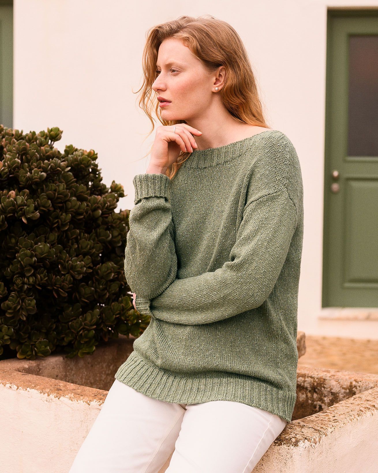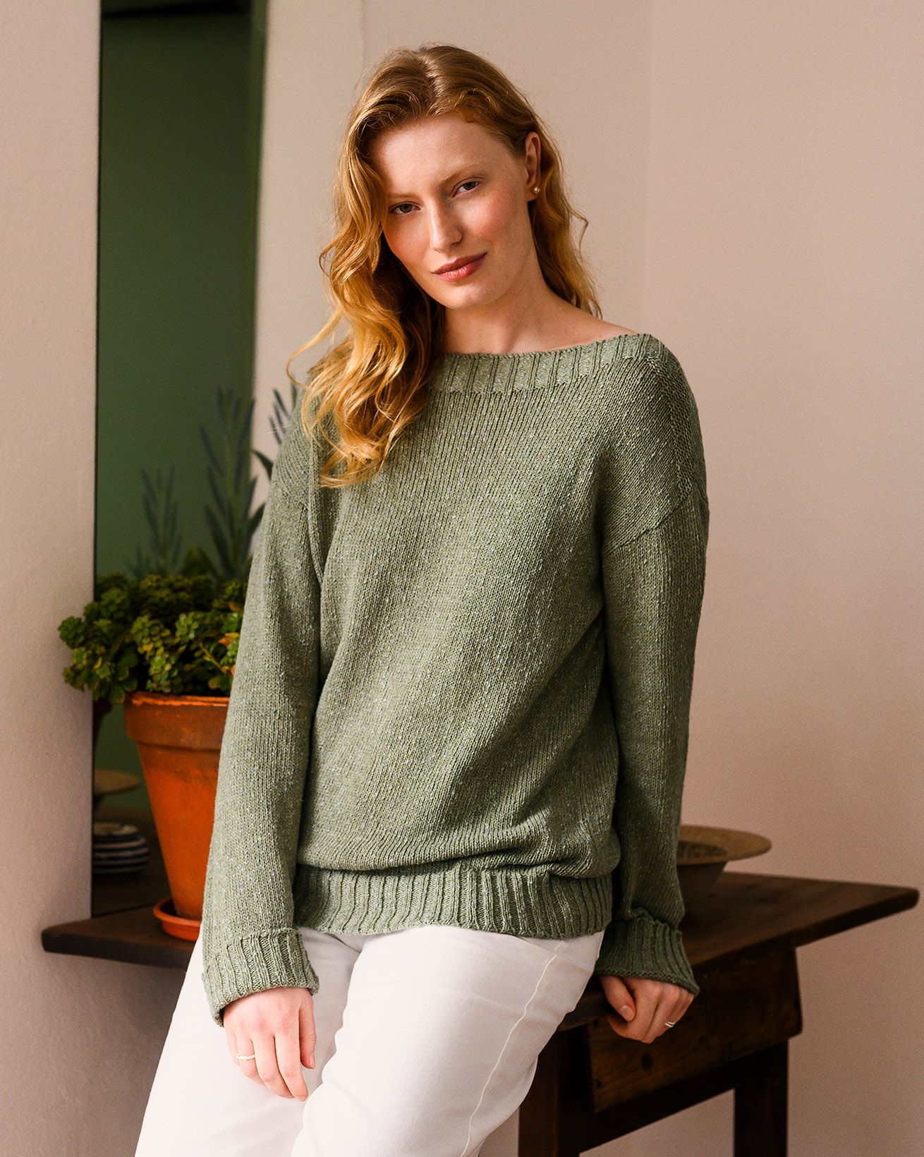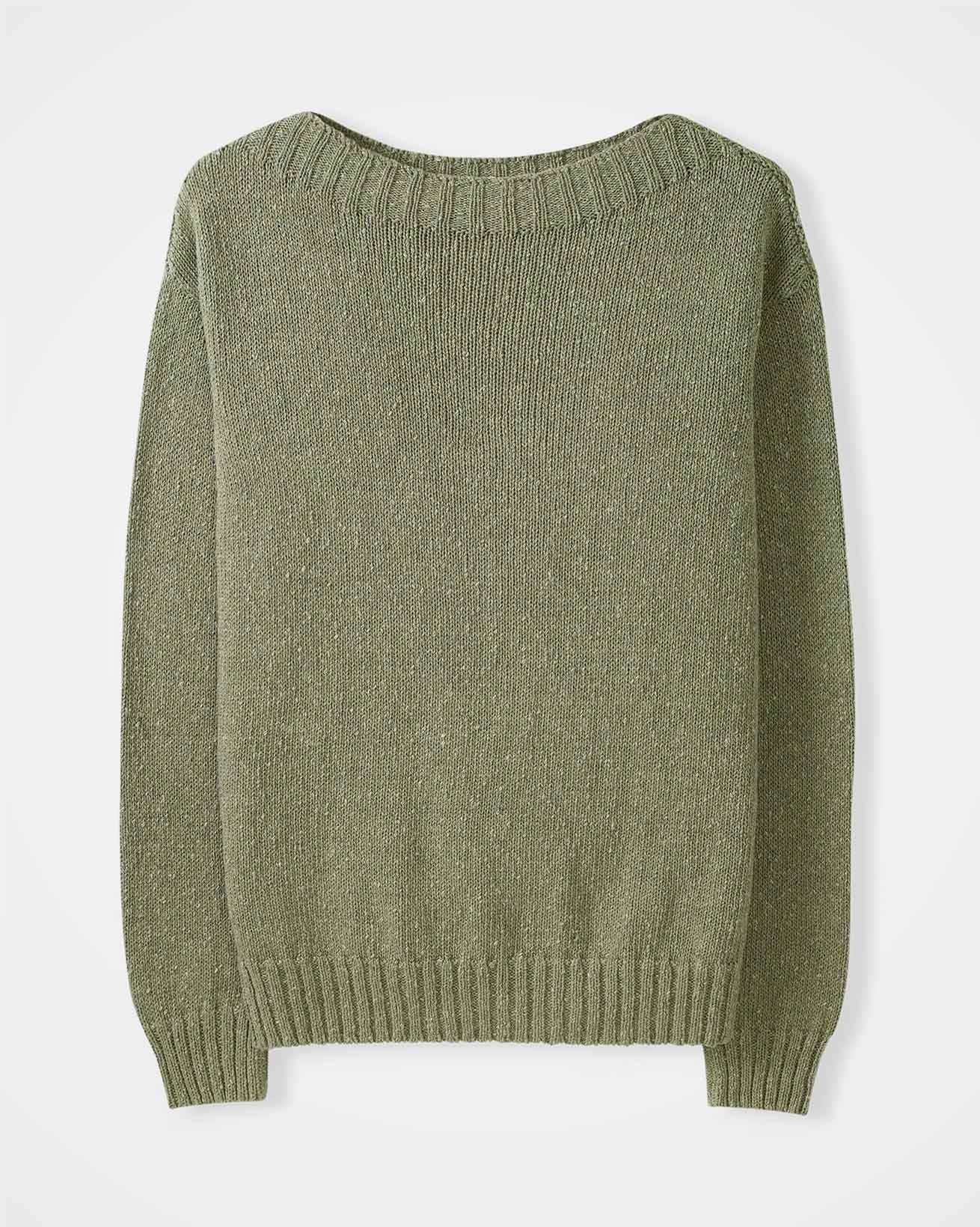 With flecked texture and a relaxed boxy cut, this boat neck jumper is crafted from soft cotton-linen for comfort and drape. Ribbed collar, cuffs, and hem add subtle structure, making it an effortless layer for all seasons.