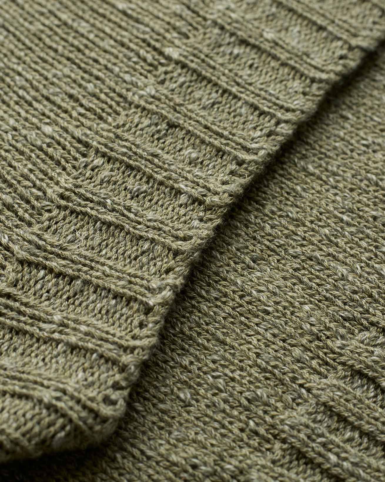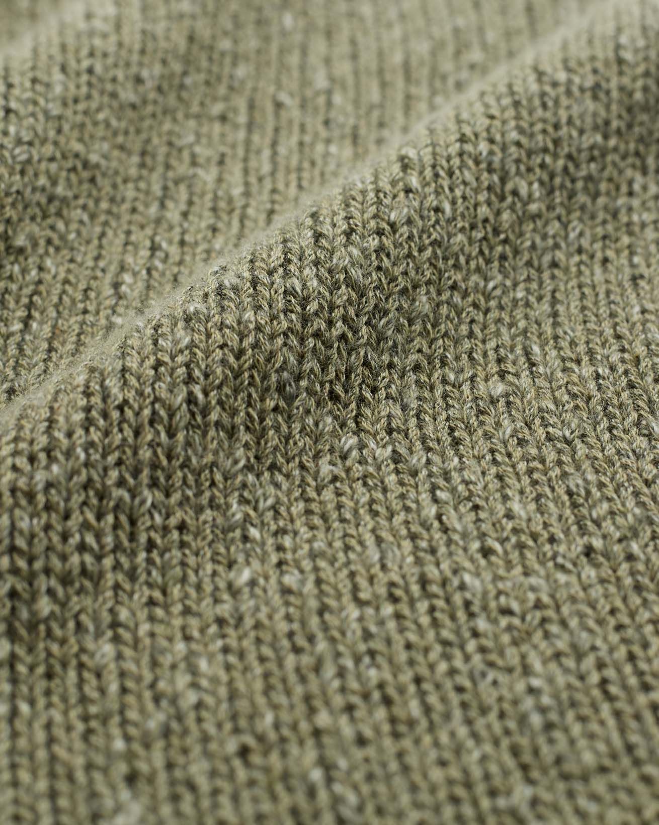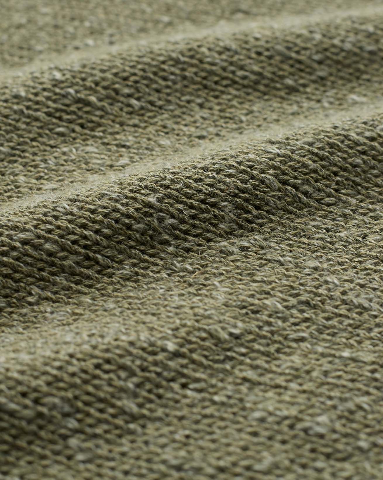Spun in Italy, this slubby melange yarn blends smooth combed cotton with textured linen. The combination provides a unique tactile quality and visual depth, ensuring comfort and breathability.