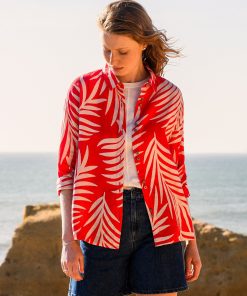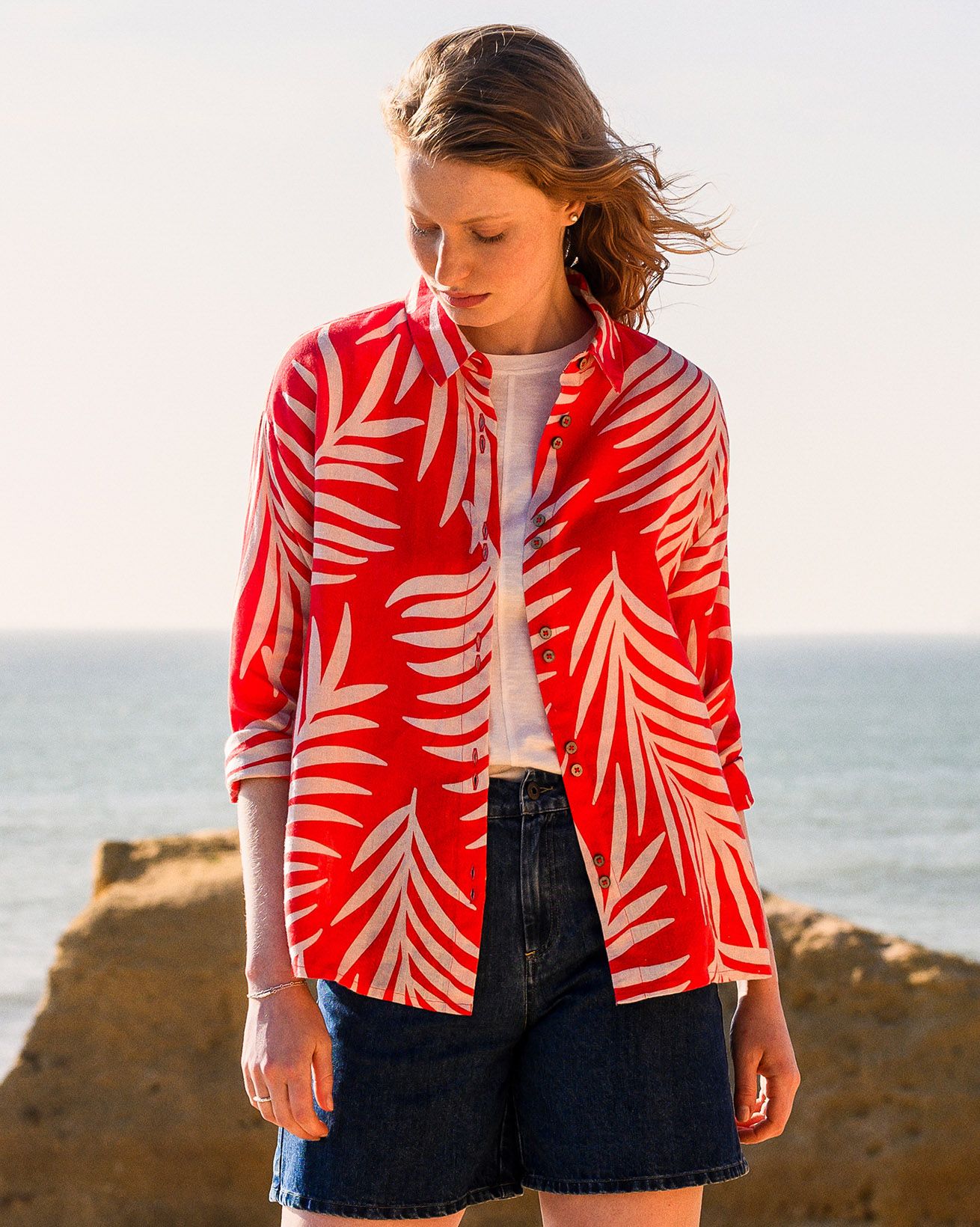 Designed with a collared neckline and bracelet-length sleeves, this shirt has a drop shoulder and a relaxed, boxy fit, creating a modern twist on classic tailoring.