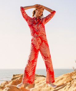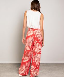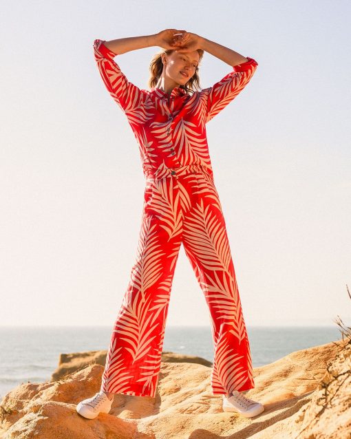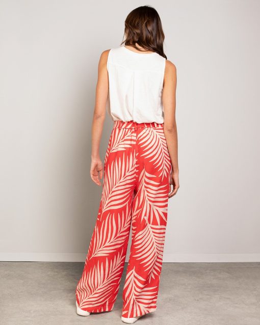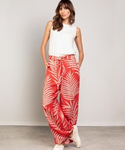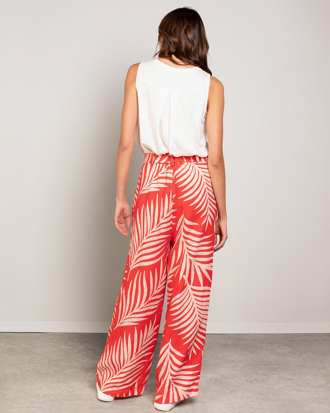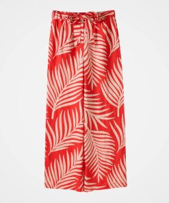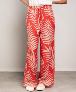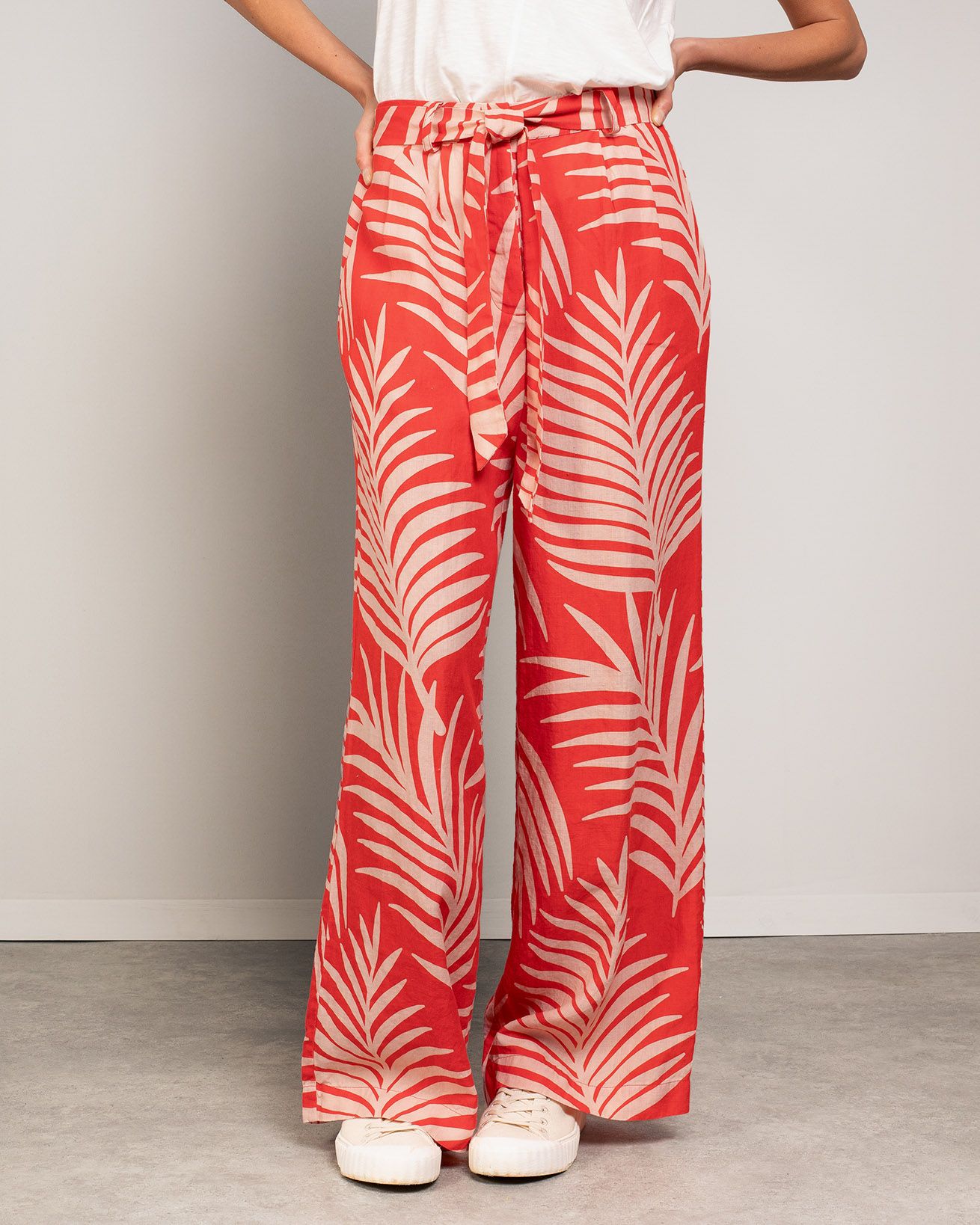 Celtic & Co Women’s Linen Self Tie Wide Leg Trousers | Burnt Orange Fern Leaf