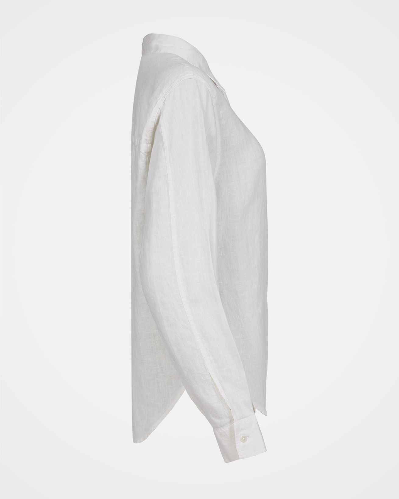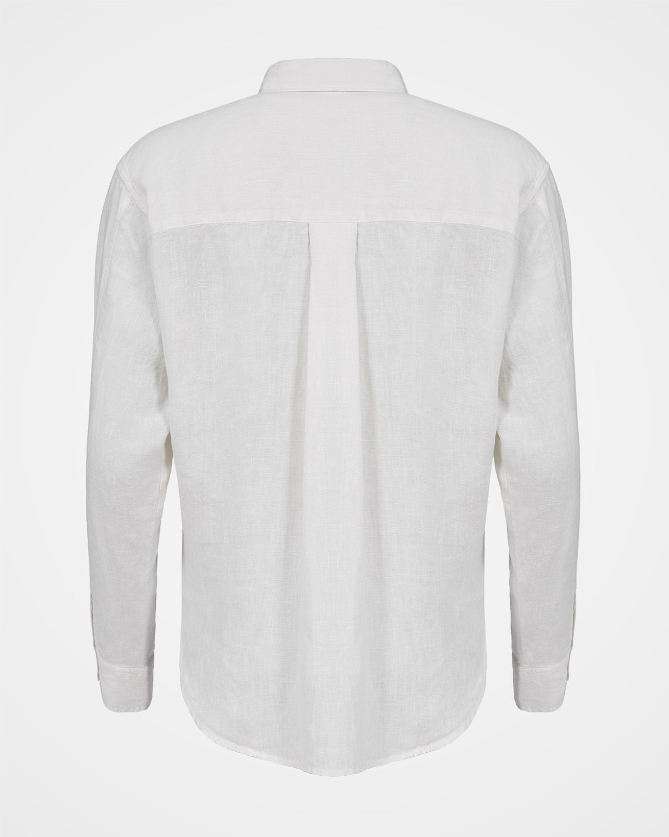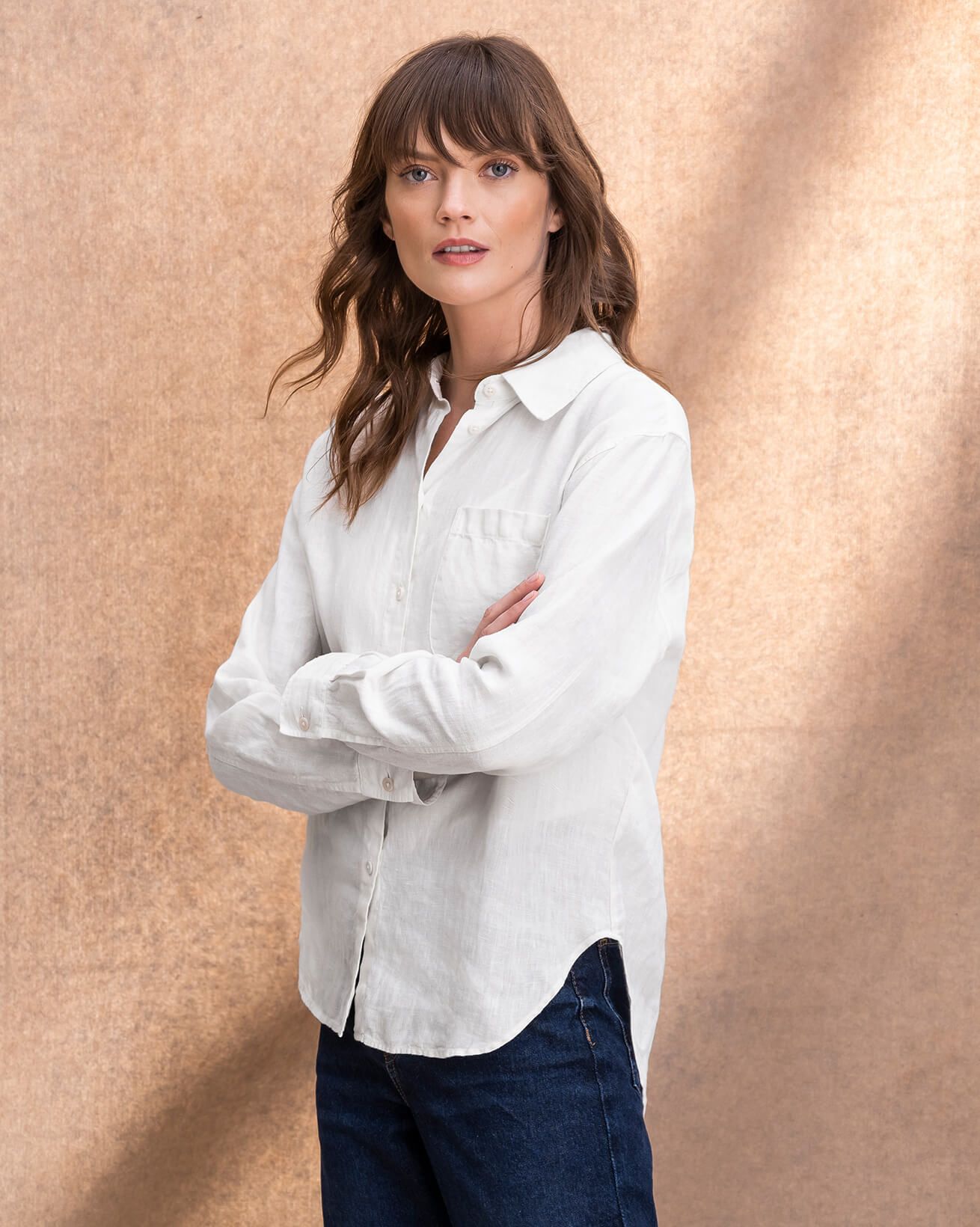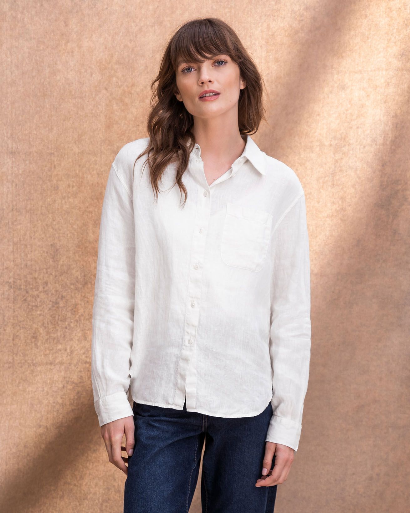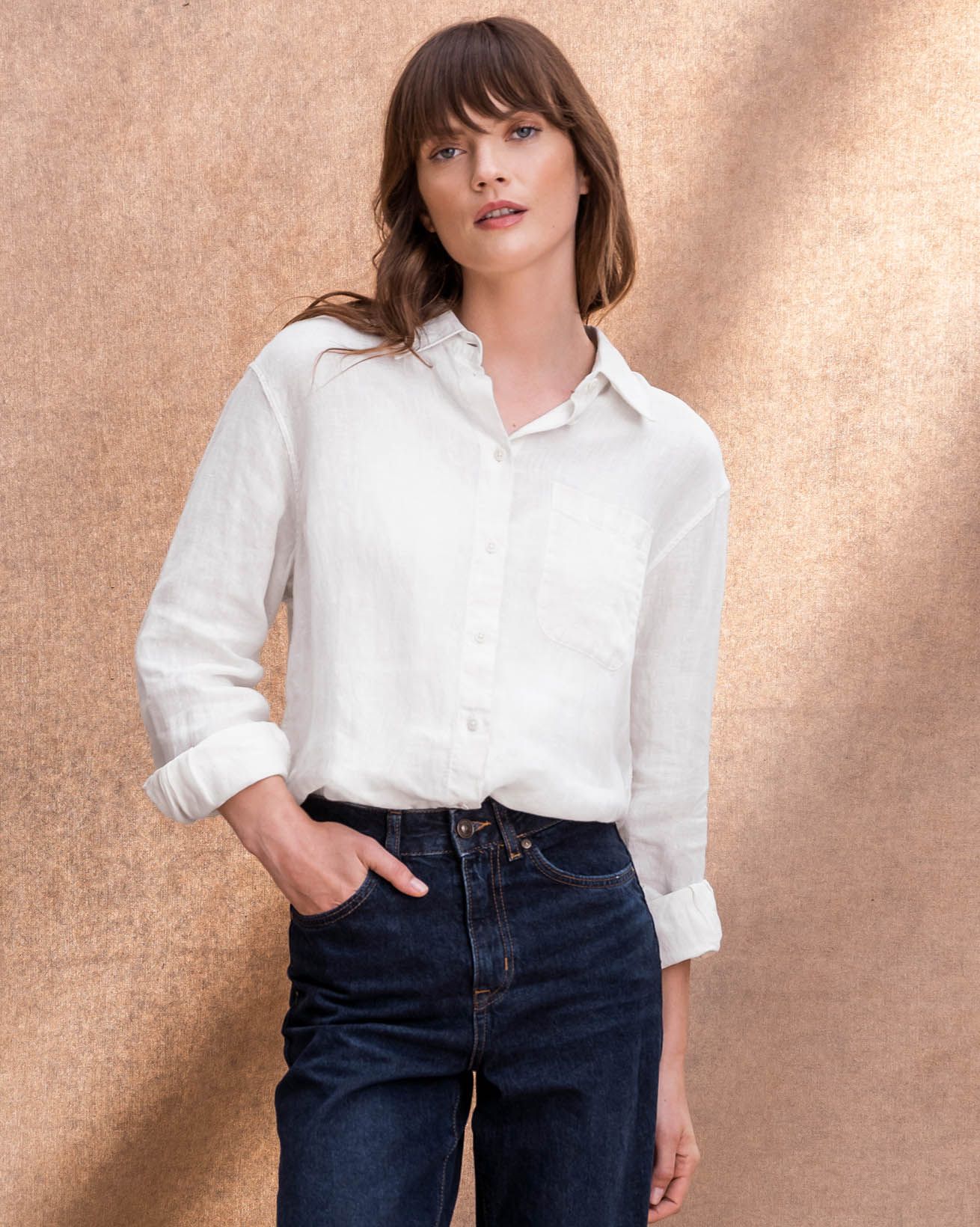 The linen shirt: a timeless classic and wardrobe must-have. With collar, buttoned cuffs, patch pocket, box pleat under the yoke and typical shirt shape, this staple has a relaxed fit that pairs beautifully with denim for an understated look.