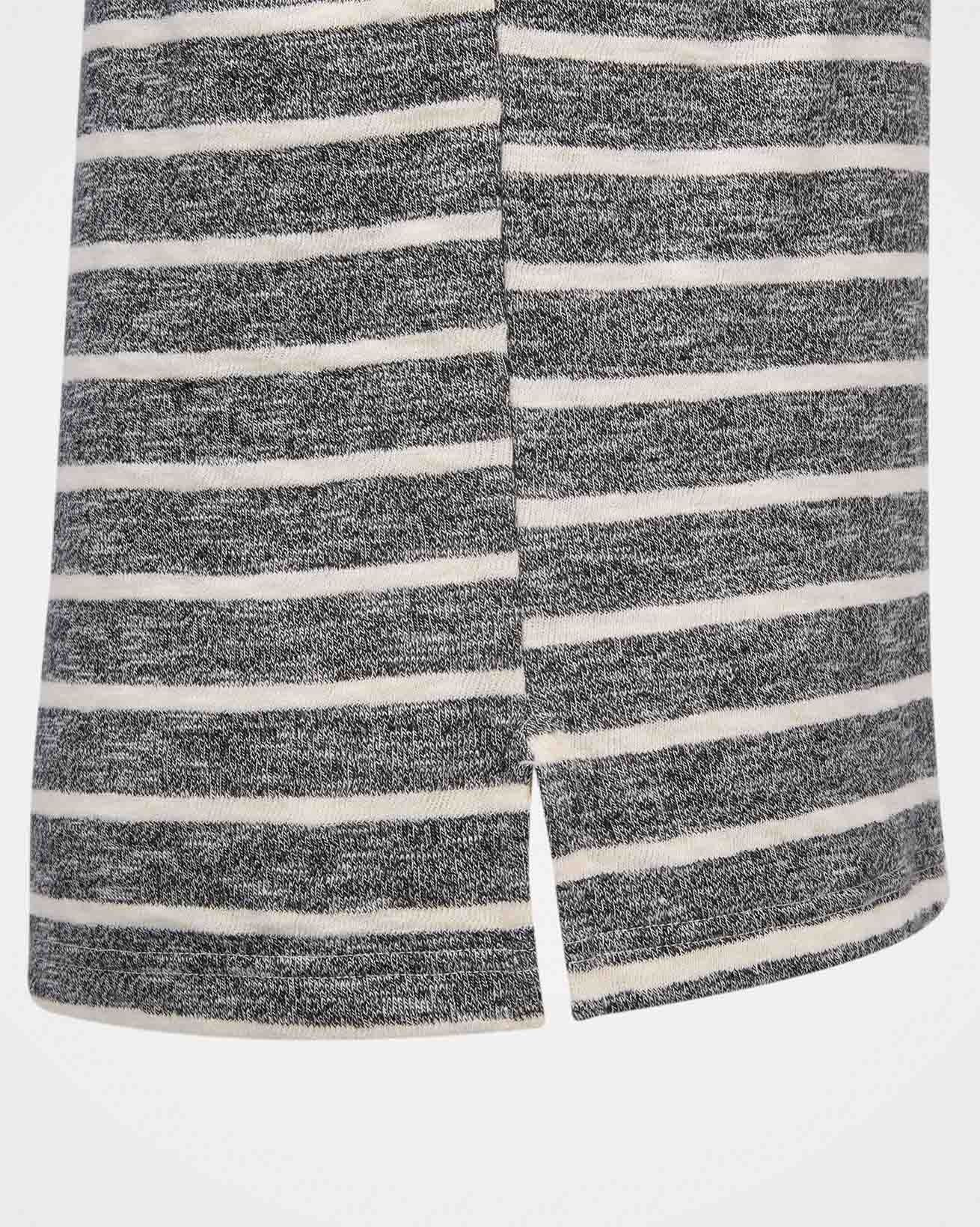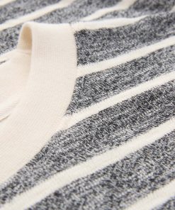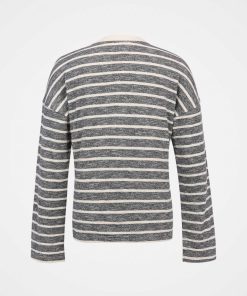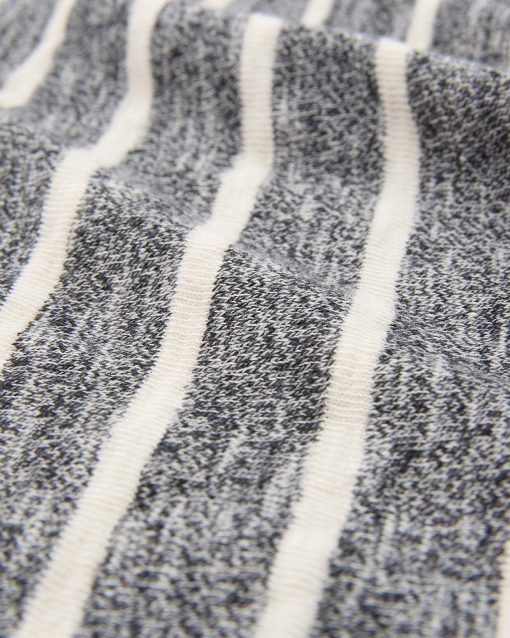 This sweatshirt features a crew neckline, drop shoulder, and ribbed trims. Its cotton marl stripe design offers a relaxed, boxy fit for casual comfort.