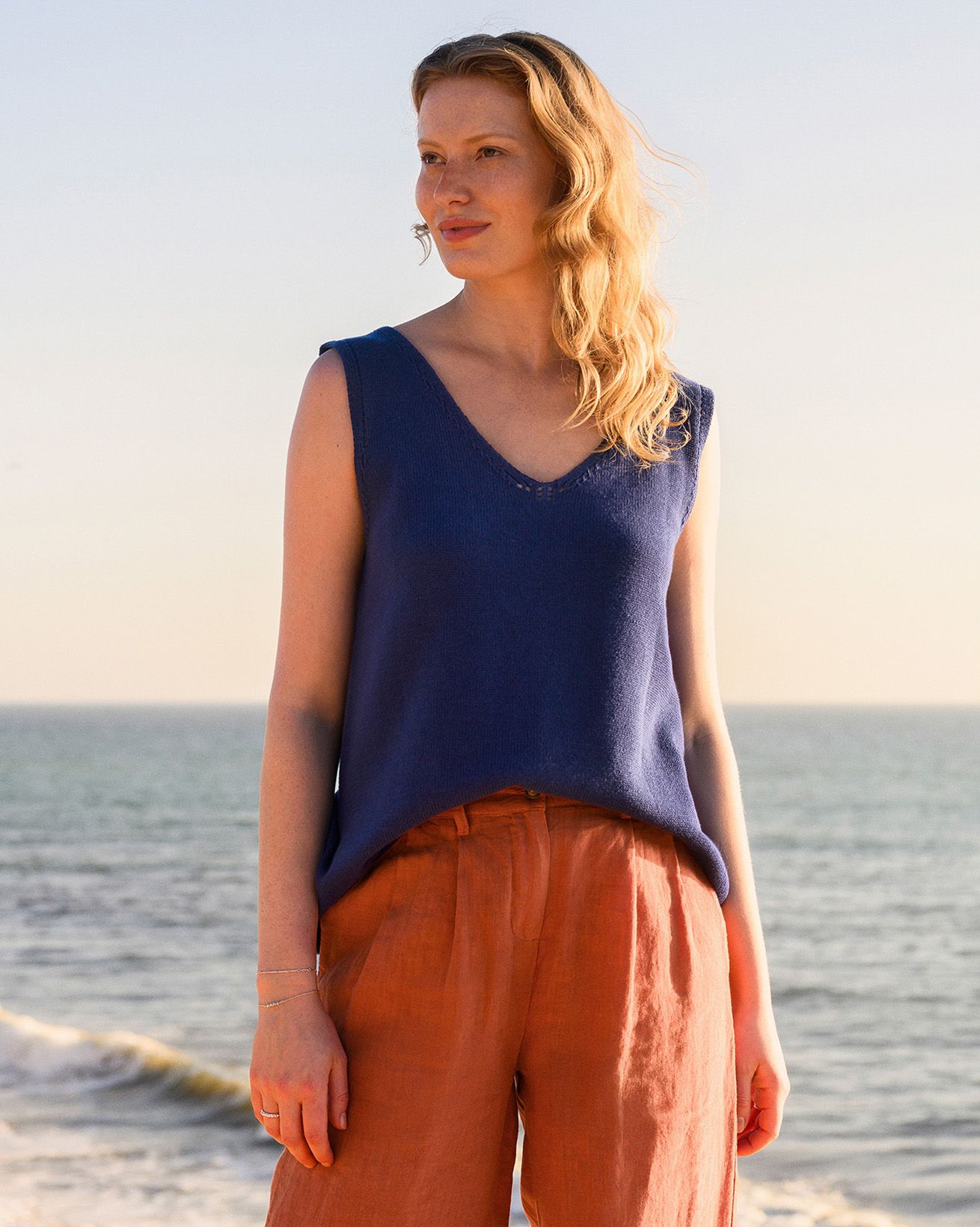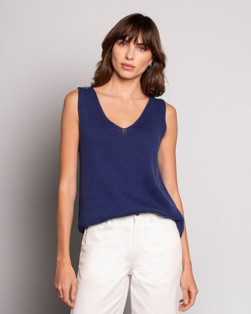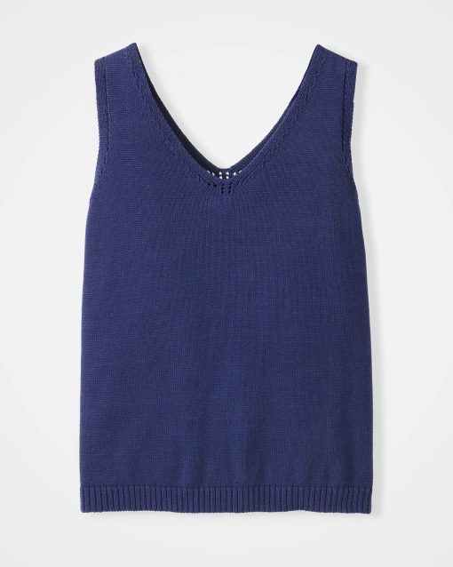 Designed with a V neckline and a straight fit, this sleeveless top features pointelle detailing around the armholes and neckline. It is perfect for layering or wearing on its own during warmer days.