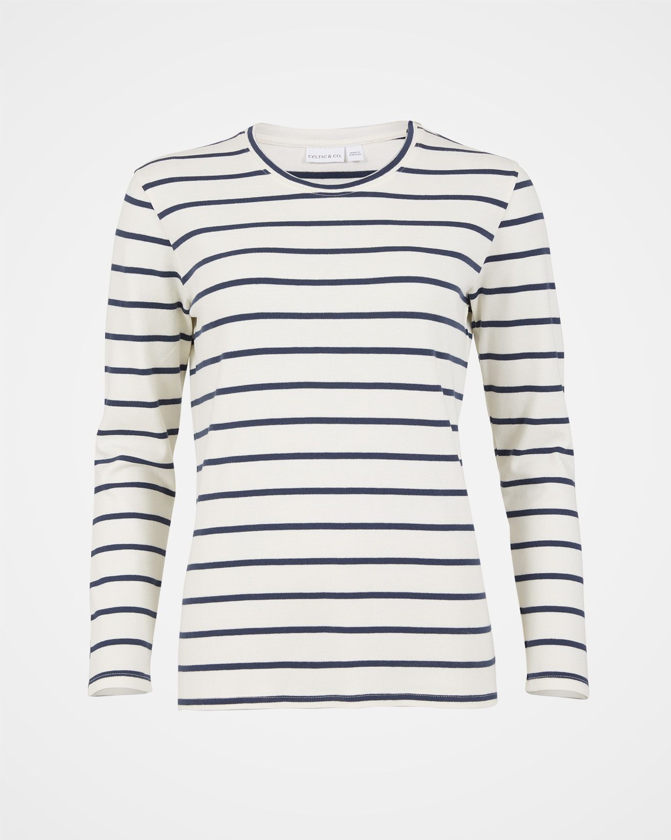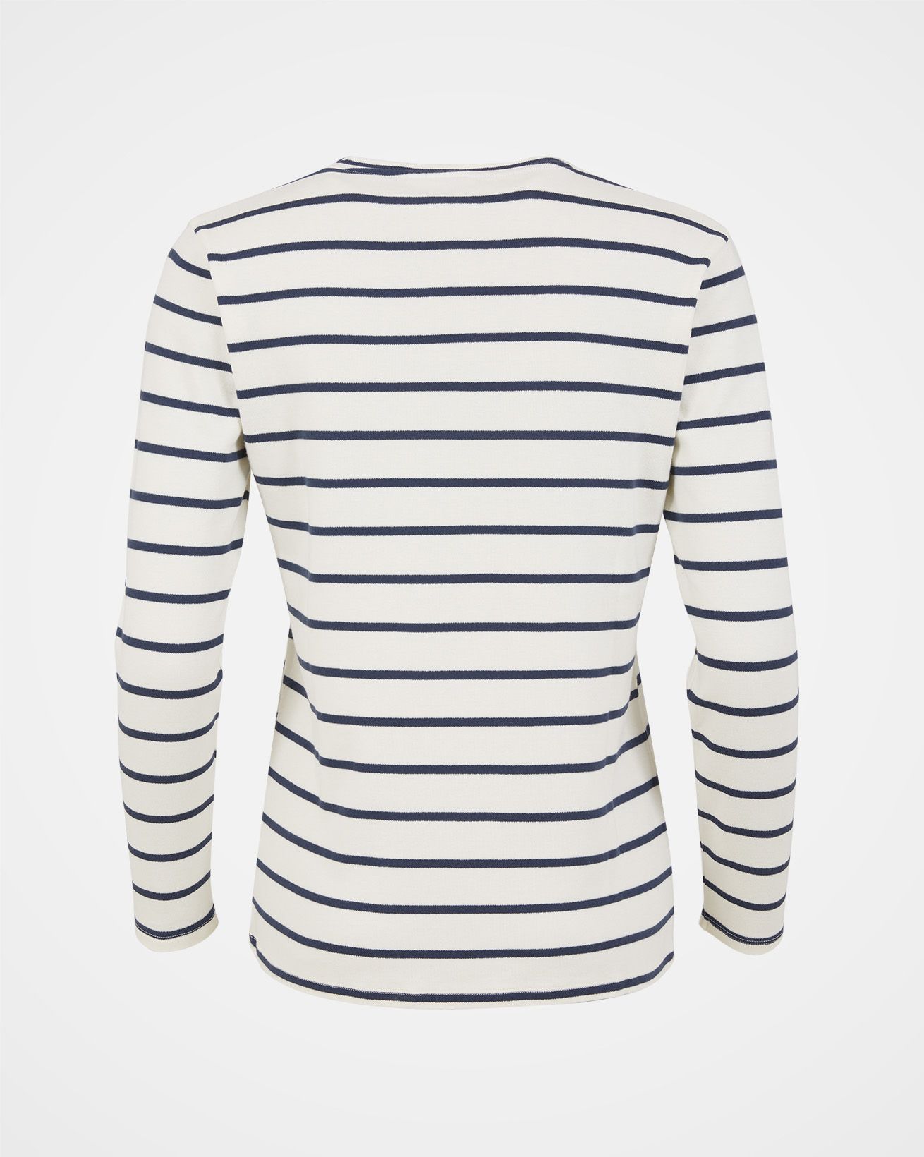 A winter-weight take on the must-have Breton jersey, created in skin-kind, planet-friendly organic cotton. This long-sleeved style teams a narrow stripe with acrew neckline for bold impact. It’s a failsafe partner to mid-blue denim, but looks equally stylish tucked into a tube skirt or wide-leg trousers.
