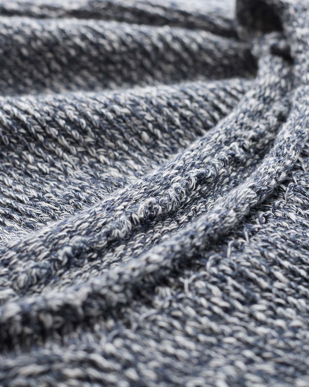 Spun in Italy, this unique yarn blends organic cotton with recycled cotton derived from denim jeans. This combination offers a mid to chunky texture, providing interesting colour variations and softness.