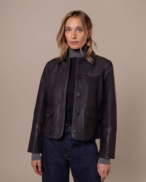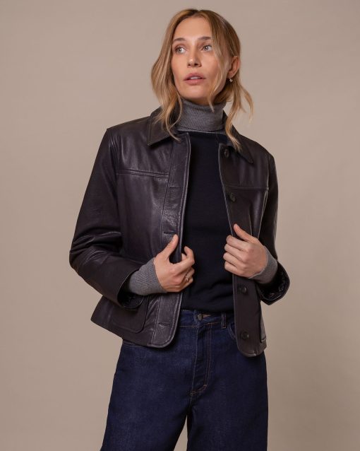 Celtic & Co Women’s Outwear Neat Patch Pocket Leather Jacket | Black