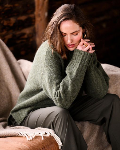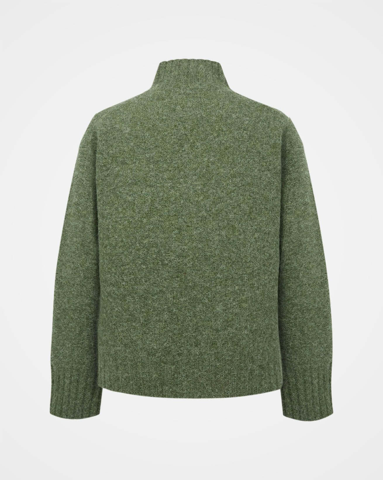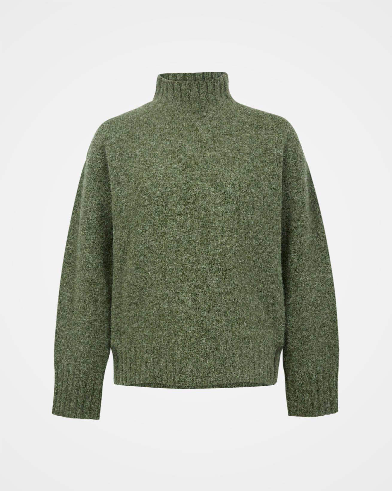 Crafted from wool with an overwashed felted finish, this jumper offers a drop shoulder boxy fit for effortless style. Its cosy funnel neckline adds warmth, making it an ideal choice for colder days.