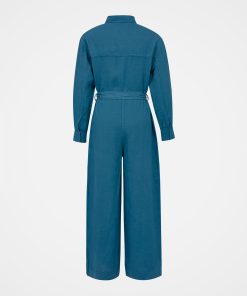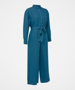 Celtic & Co Women’s Pure Linen Long Sleeve Jumpsuit | Deep Icelandic Blue