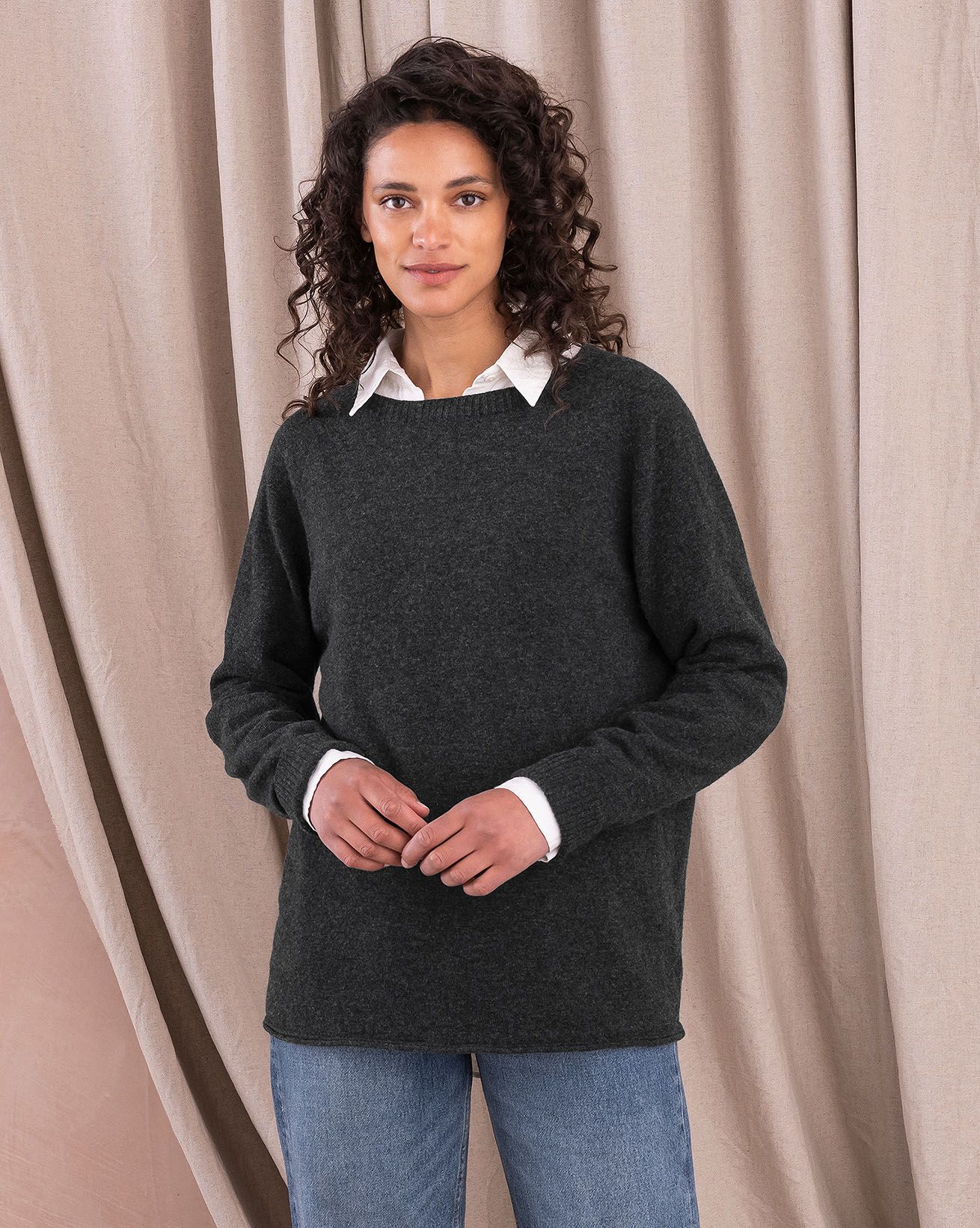 Cut to a slouchy shape, our core Geelong jumper style has been updated with an easy-to-wear crew neckline for more versatility and wearability throughout the seasons. Featuring ribbed cuffs and our signature cast-off rolled hem, this jumper is created to be lived in. Perfect for days in the garden, relaxing inside or an evening on the beach.