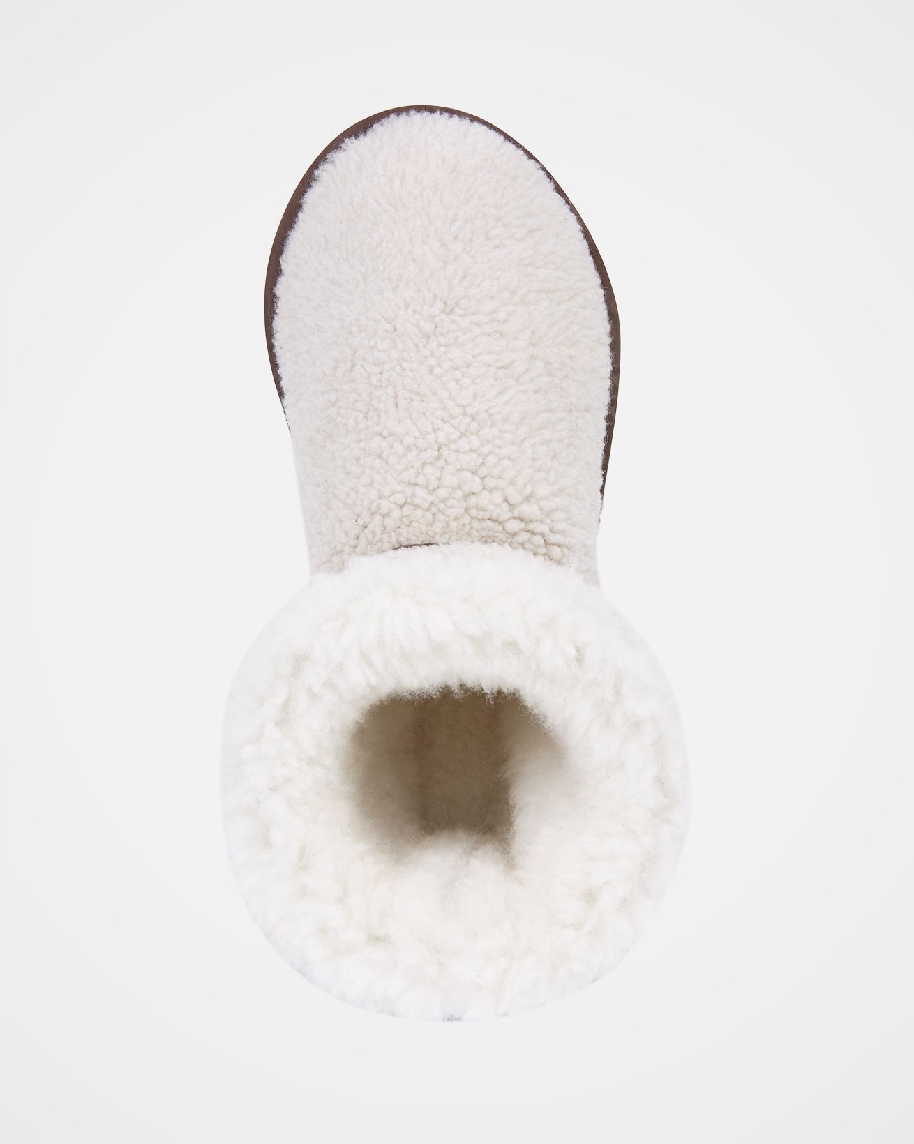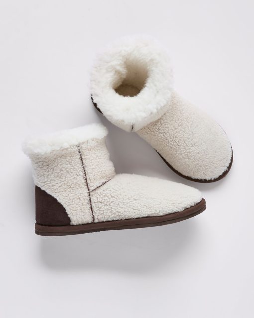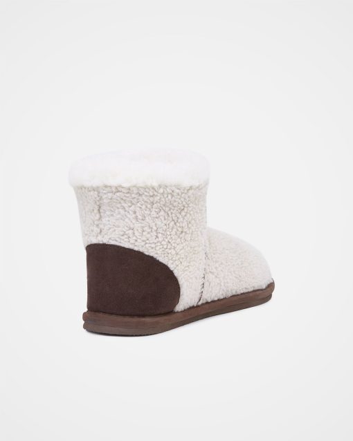 The teddy sheepskin shortie is the latest addition to our house boot collection. Created in a shortie height with an indoor slipper sole, they are luxuriously soft with a curly merino outer and lined with curly sheepskin. Details include a contrast suede heel panel and contrast binding on the seams. These boots are incredibly cosy for lounging around at home.