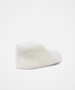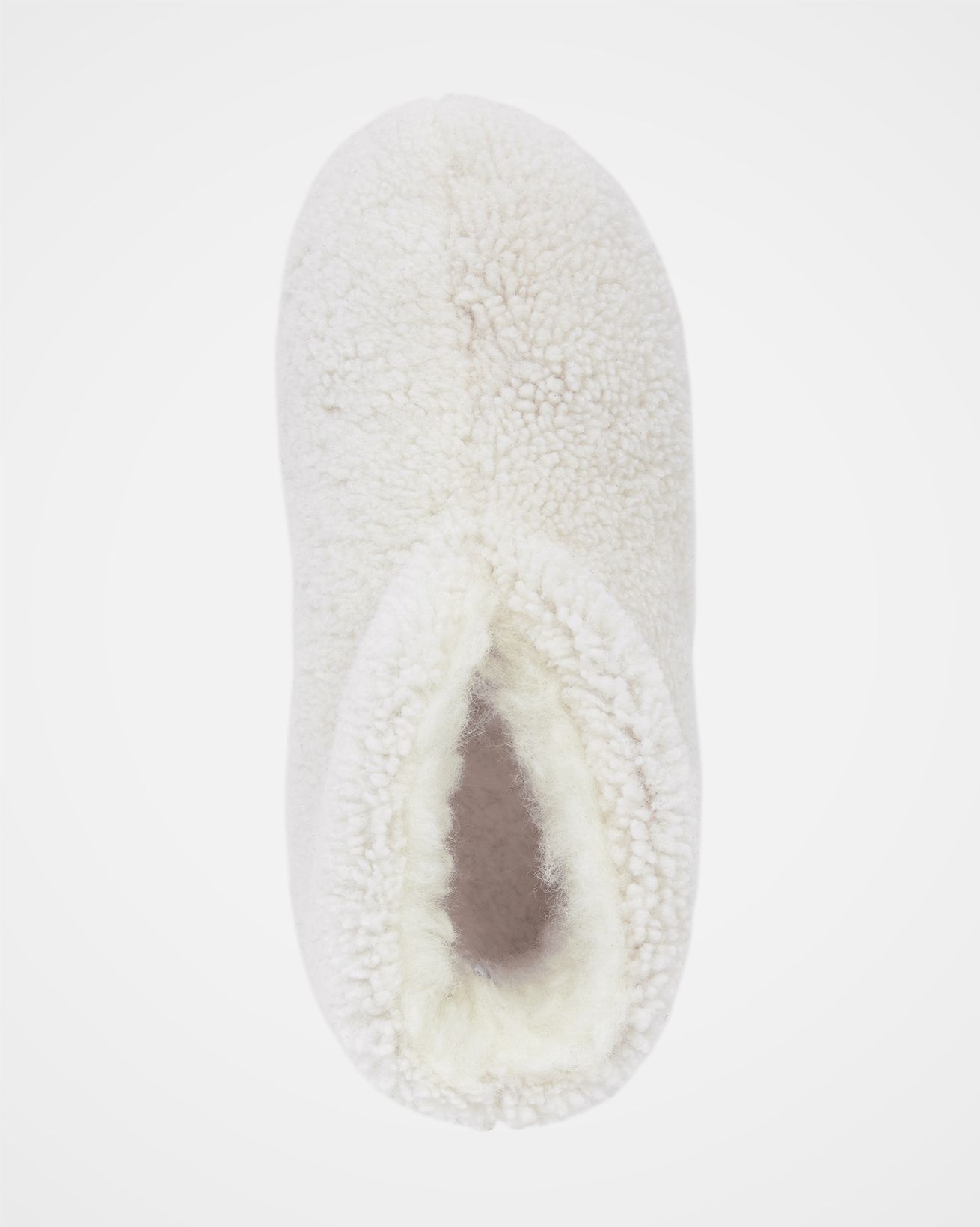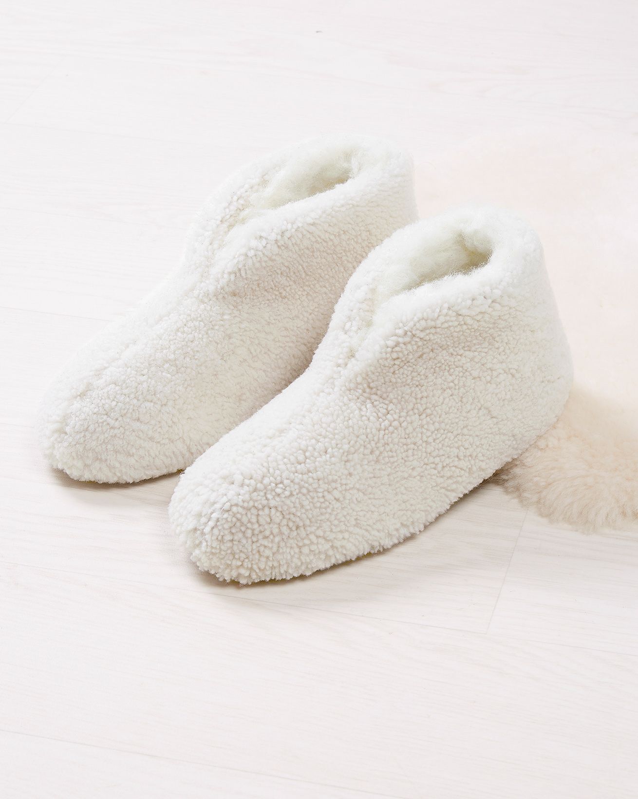 The upper of this style is fashioned from curly wool merino sheepskin, delivering a distinctive and plush texture. The lining features a 100% wool fleece material, enhancing warmth and comfort. The sole is crafted from soft, flexible, yet hardwearing leather, ensuring durability and ease of movement.