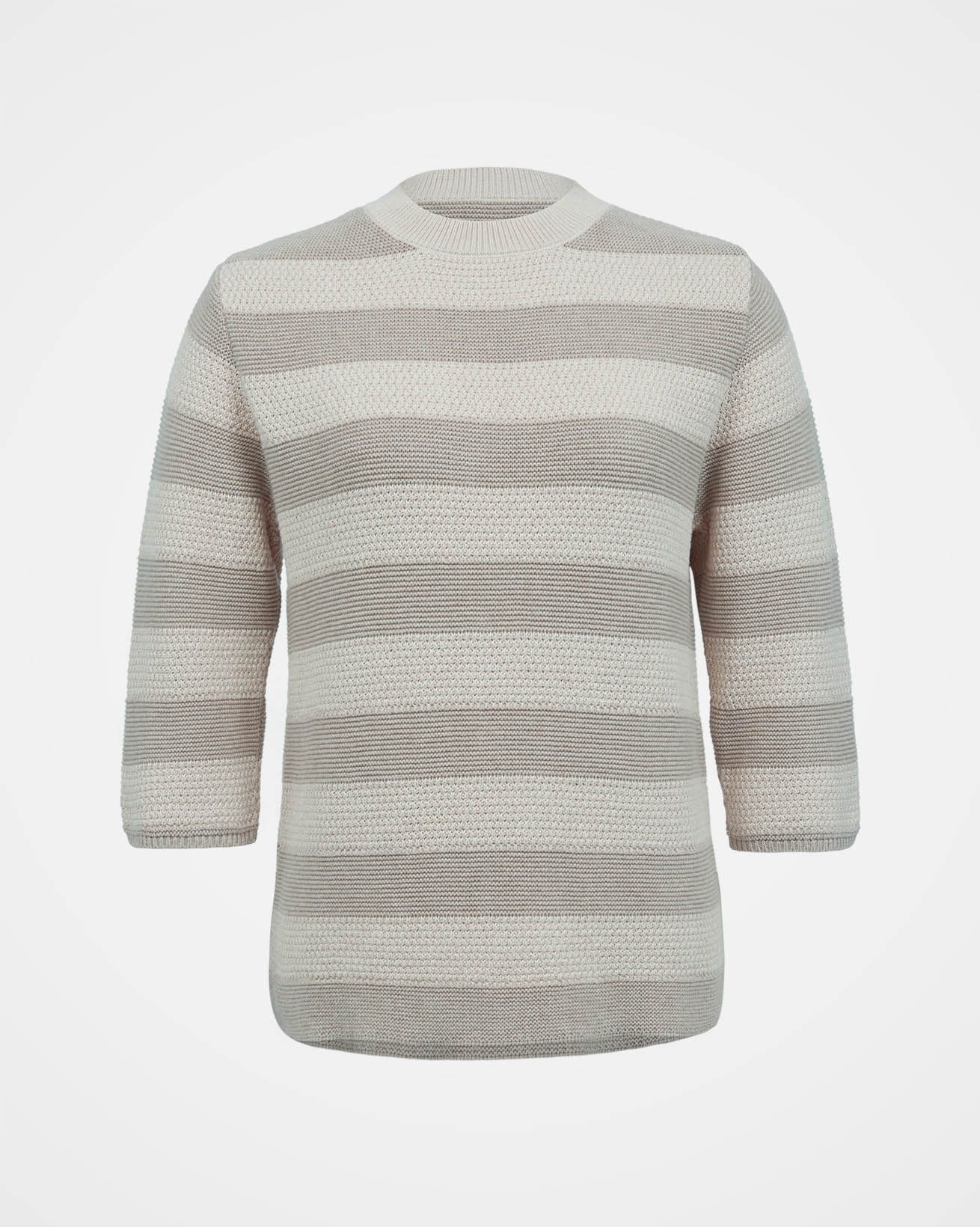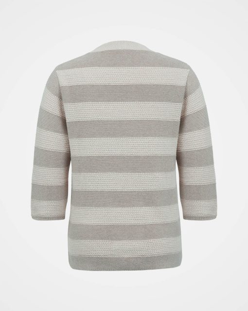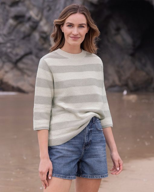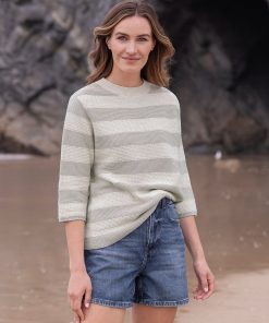 Enjoy casual comfort this summer with our Textured Knit Half Sleeve Jumper. This easy-going knit features half-length sleeves, a ribbed crew neckline, and narrow ribbed cuffs. The wide stripes of contrasting purl and moss stitch offer contemporary variation of texture. Crafted from clean organic cotton, it’s a lightweight and naturalchoice for a relaxed appeal.