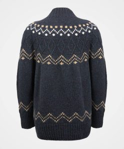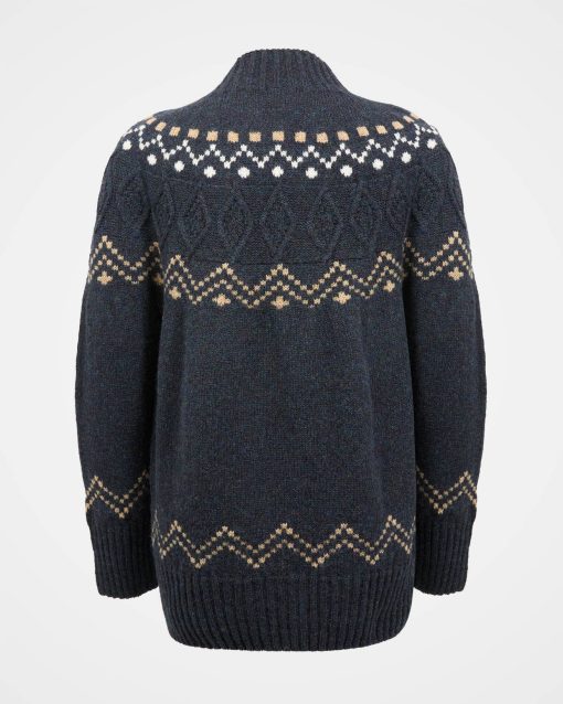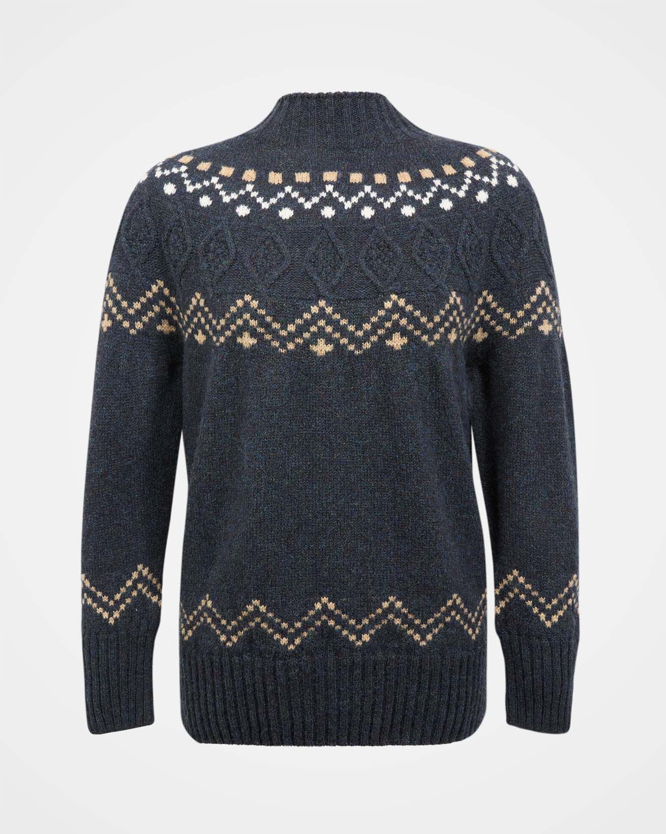 Celtic & Co Women’s Textured Stitch Fair Isle Yoke Jumper | Navy Marl