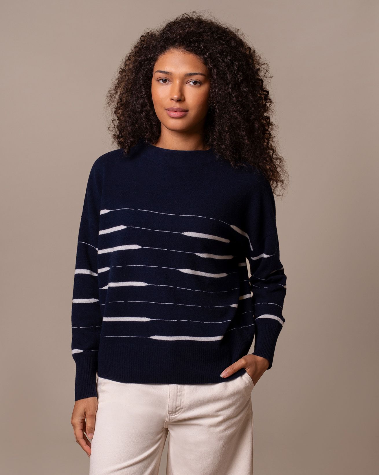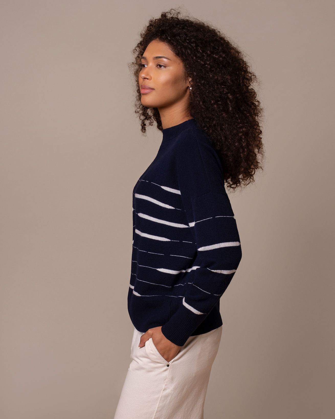• Modern take on a breton with an irregular stripe detail