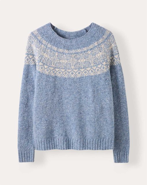 Knitted from flecked Donegal wool, this jumper features a crew neckline and a two-colour Fair Isle yoke for a refined heritage look. Designed with raglan sleeves and ribbed hems, it’s a timeless piece with a modern feel..